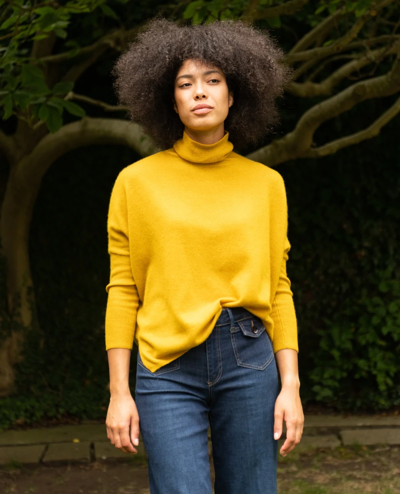 Absolut Cashmere Clara Ochre Rollneck Knit, a beautiful turtleneck jumper in vibrant ochre. The Clara is the perfect everyday knit, with long sleeves, rollneck and ultra-soft fabric, this oversized jumper is perfect for the cold season. Available in a number of colours.