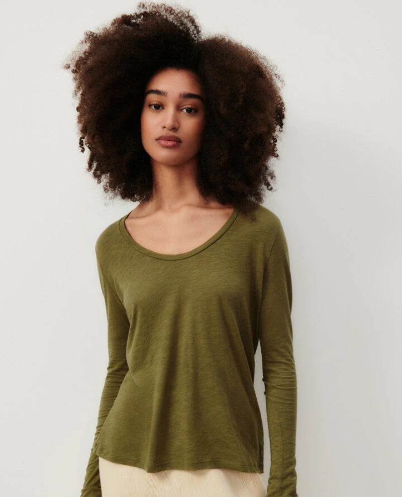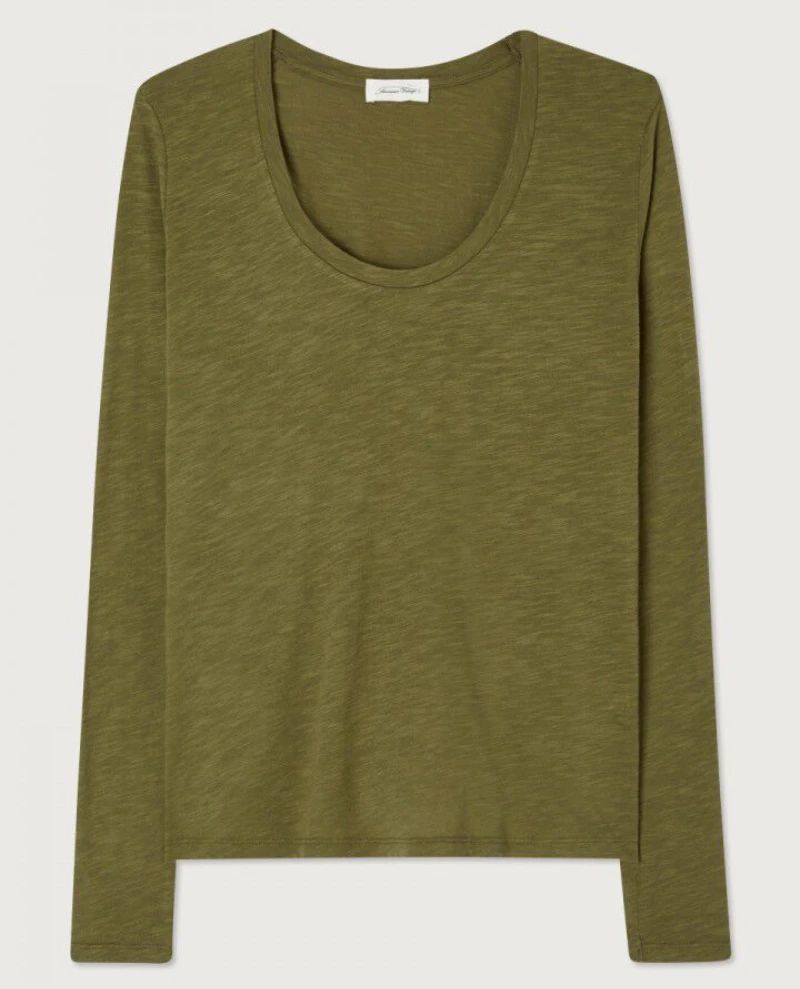 Show off your style with this American Vintage Jacksonville Fluro Rose Long Sleeve T-Shirt. Crafted with a lightweight, cotton fabric, this relaxed-fitting top features a deep green, rounded neckline and long sleeves for a comfortable look. Perfect for any season.