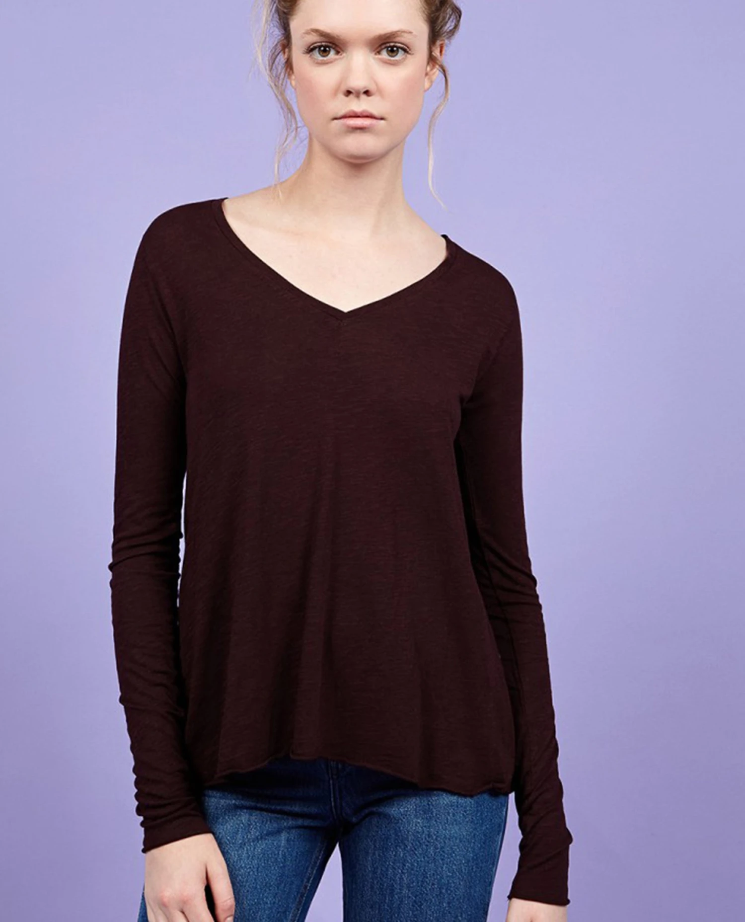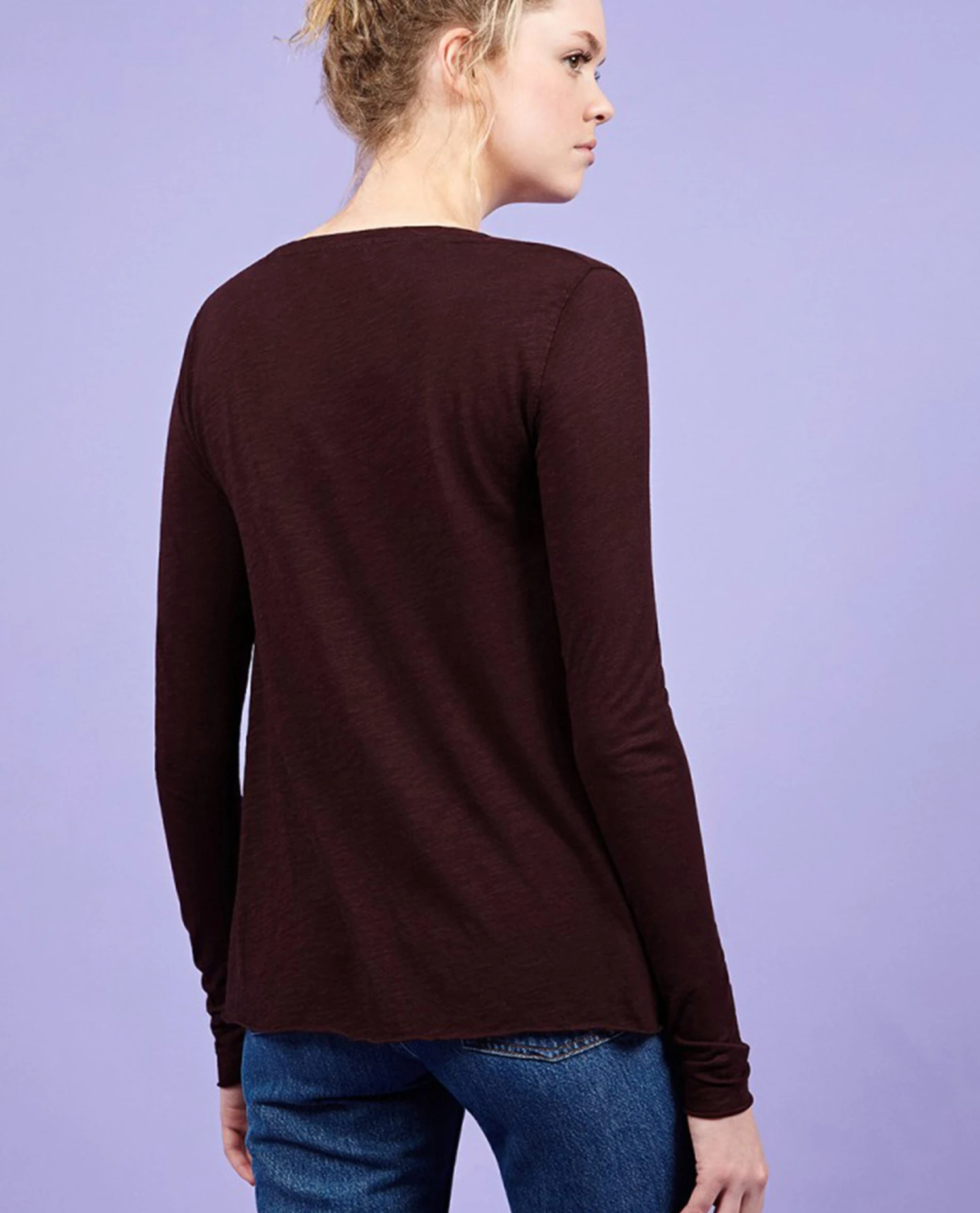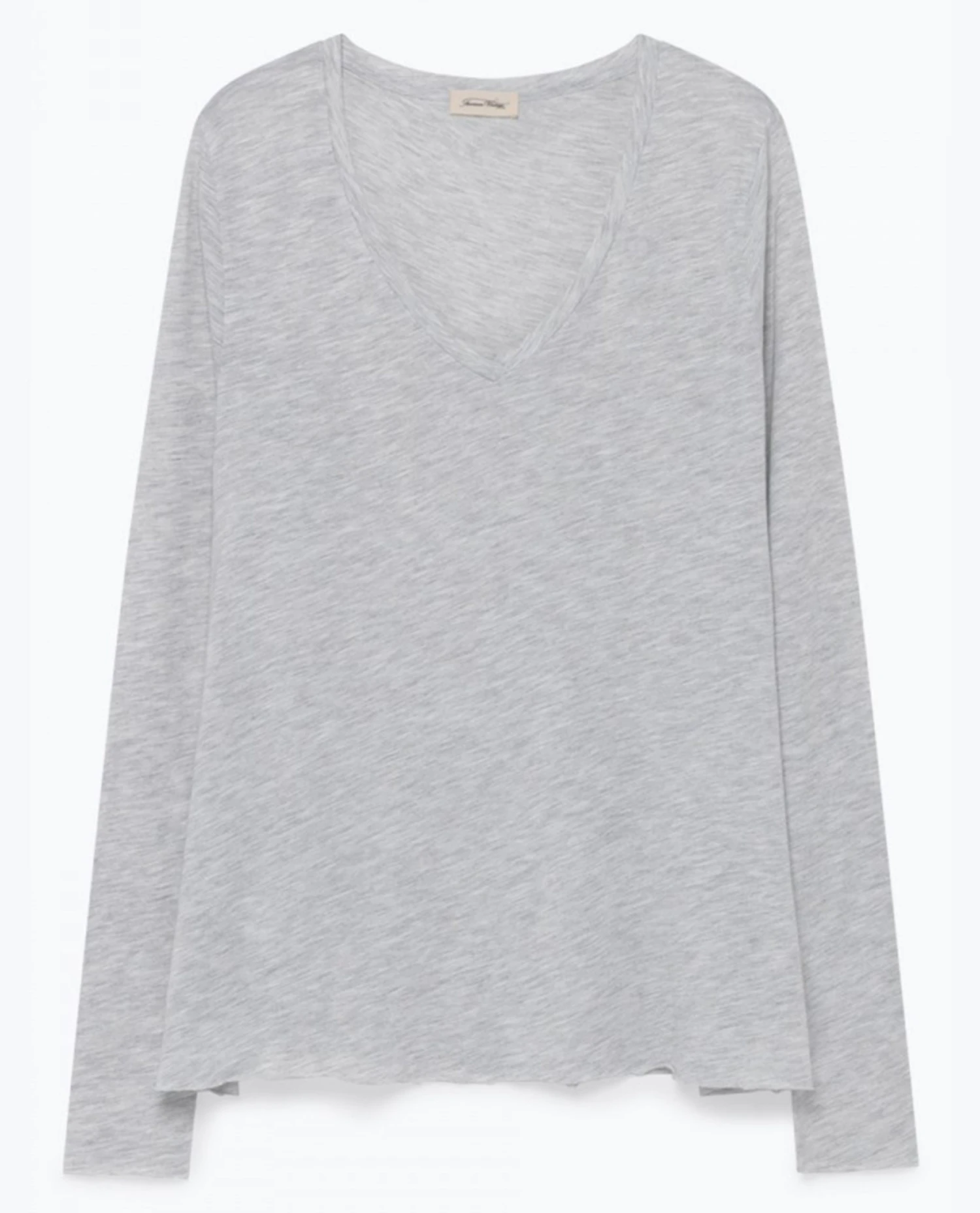 American Vintage Jacksonville Grey Long Sleeve T-Shirt, easy to wear and practical this super soft pale polar gris top has a slightly flared shape. For the new season it also comes in bordeaux and black.