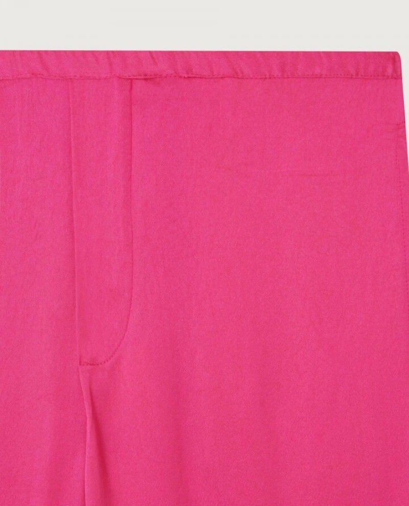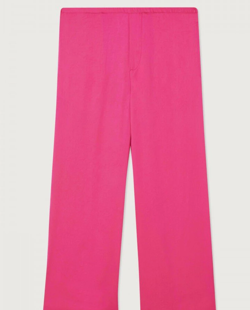 American Vintage Widland Magenta Trouser, a vibrant pink trouser with subtle sheen. With a mid-rise and straight leg, the Widland Trousers have an elasticated waist and drawstring tie.