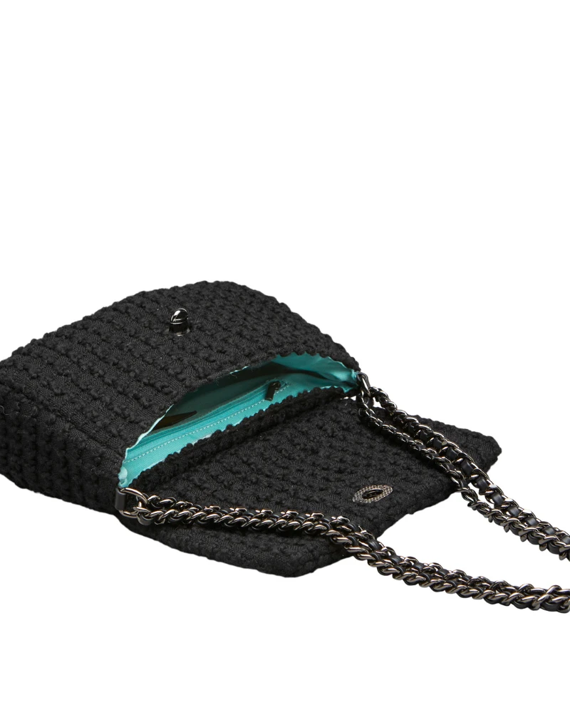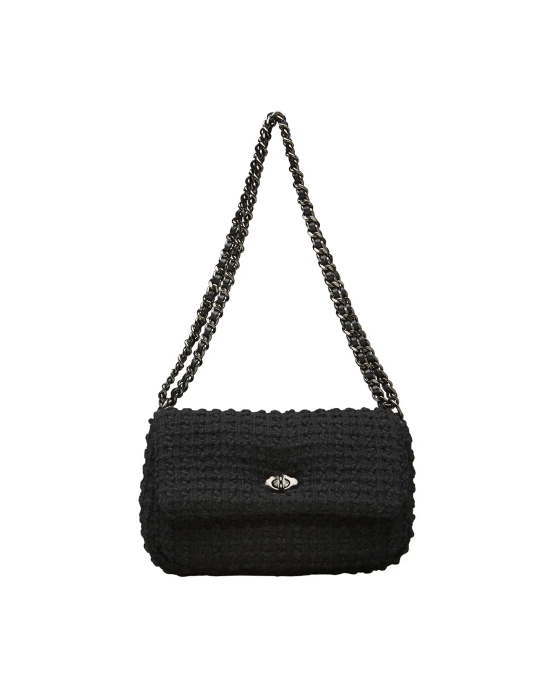 The Beck Sondergaard Ashby Hollis Bag features a classic and timeless look with a matte black finish and enamel chain handle. It has a clasped closure for extra security to keep all of your belongings safe. A perfect way to add a touch of sophistication to any outfit.