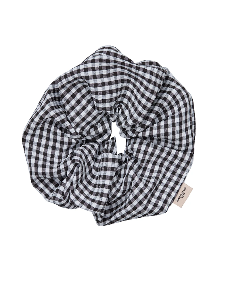 Beck Sondergaard Cosette Black Scrunchie, a black and white gingham check fabric hair scrunchie.