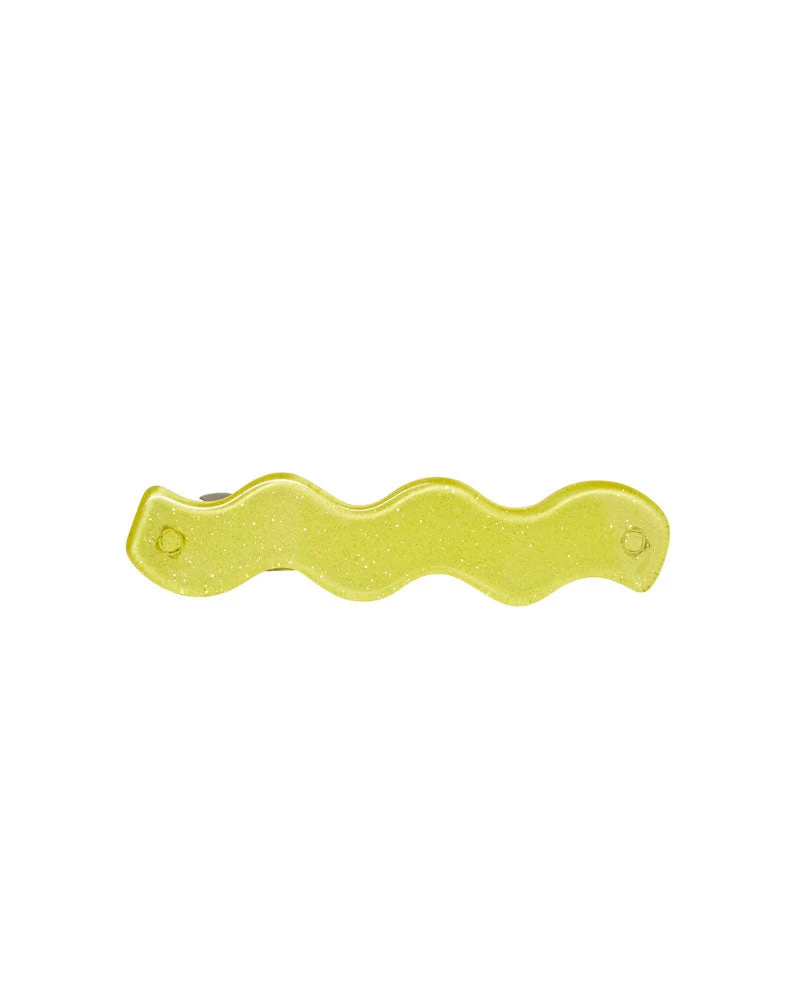 Beck Sondergaard Gliz Wave Sunshine Hair Clip, a shiny sunshine yellow wave hair clip. With steel fastening and sparkling glitter detail.