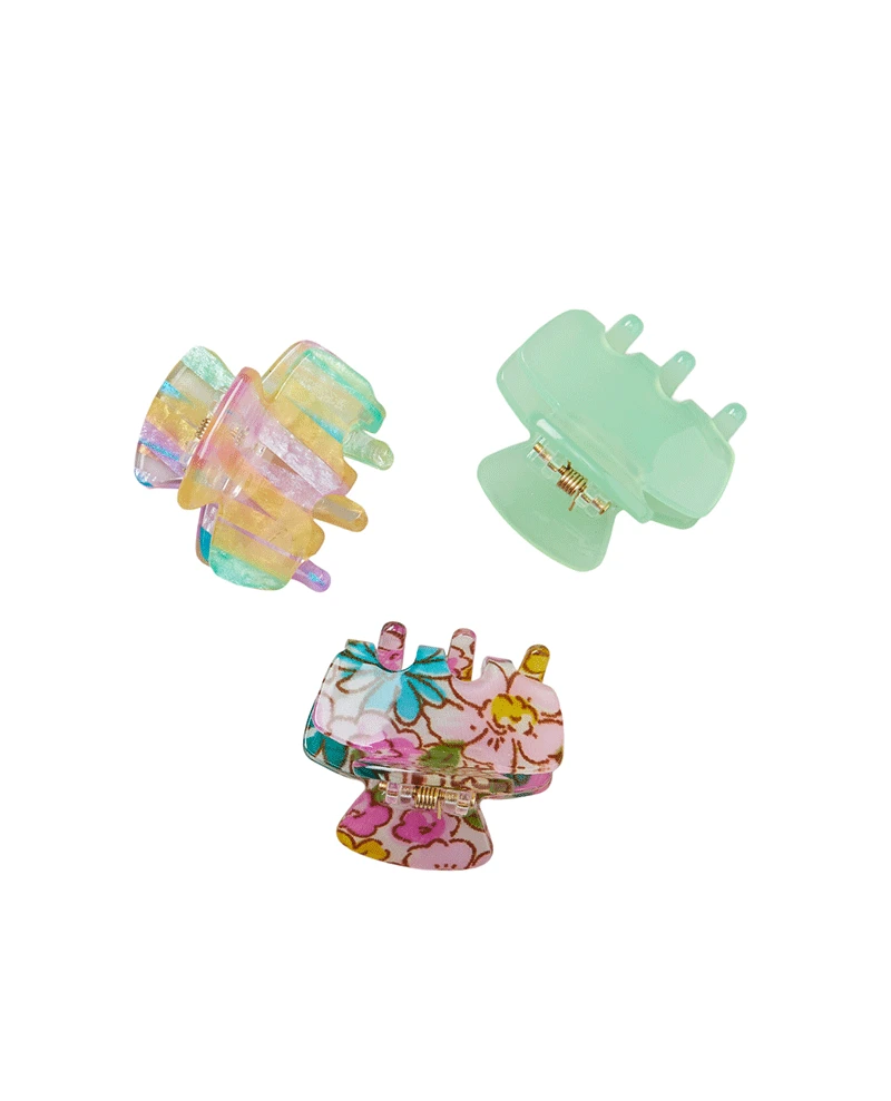 Beck Sondergaard Minta Green Hair Claw, a set of three mini plastic hair clasps in a mix of pastel shades.