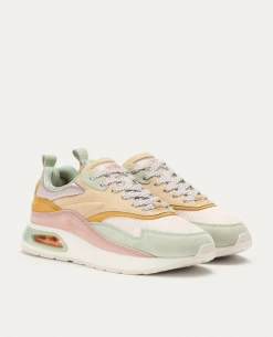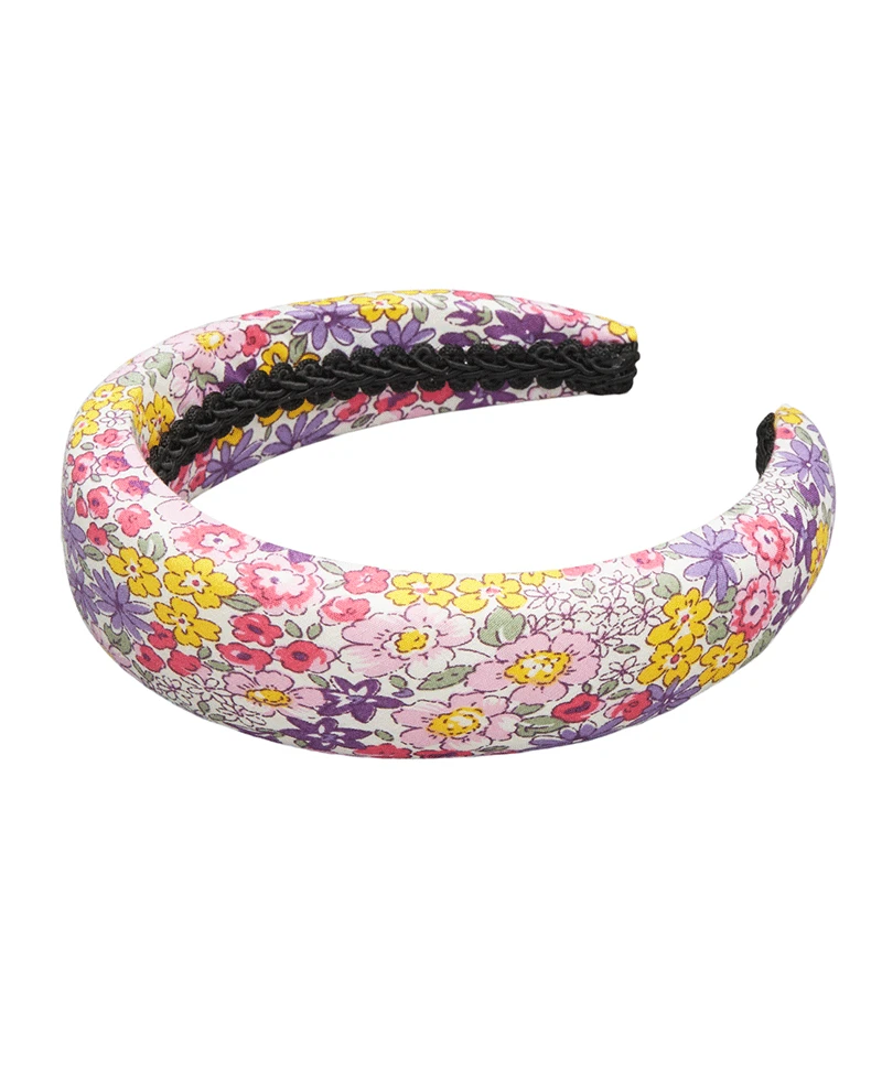 Beck Sondergaard Nadia Multi Hairband, a padded fabric headband in a pink, purple, yellow and white floral print.