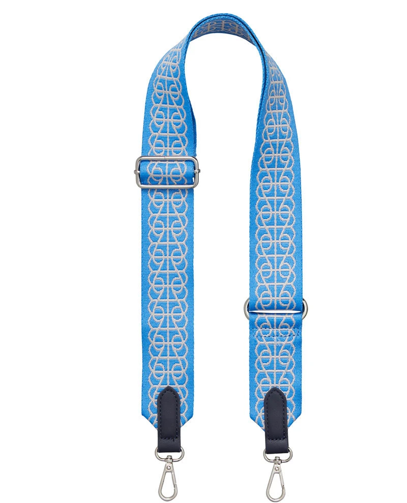 Beck Sondergaard Selina Bag strap, a colourful bag strap in sky blue and white pattern. With clasp fastening, simply hook to the bag of your choice!