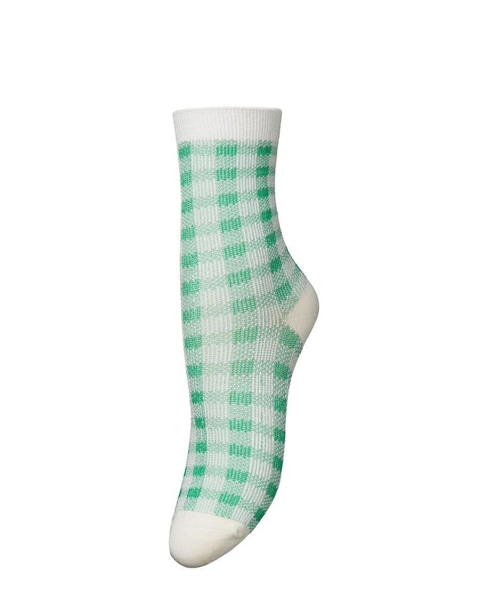 Beck Sondergaard Skylar Funki Green Socks, a stretchy pair of green and white checked ankle socks.