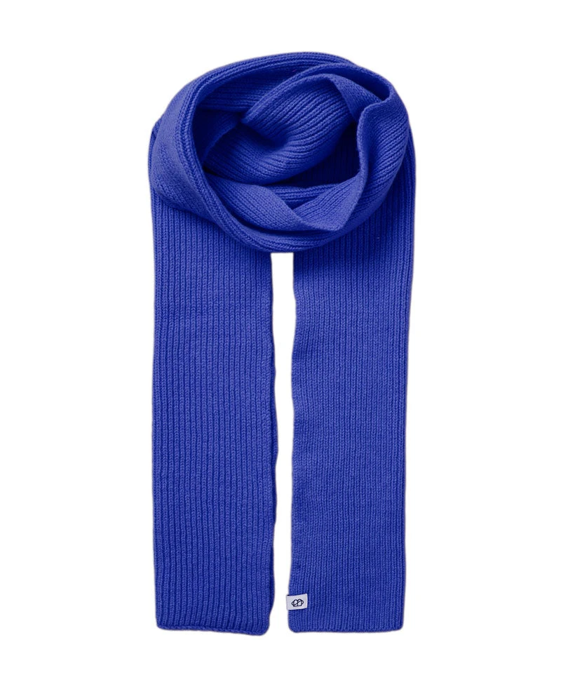 Beck Sondergaard Solid Blue Scarf, a soft ribbed scarf in cobalt blue. Beautifully soft and finished with clean edge and Beck Sondergaard label.