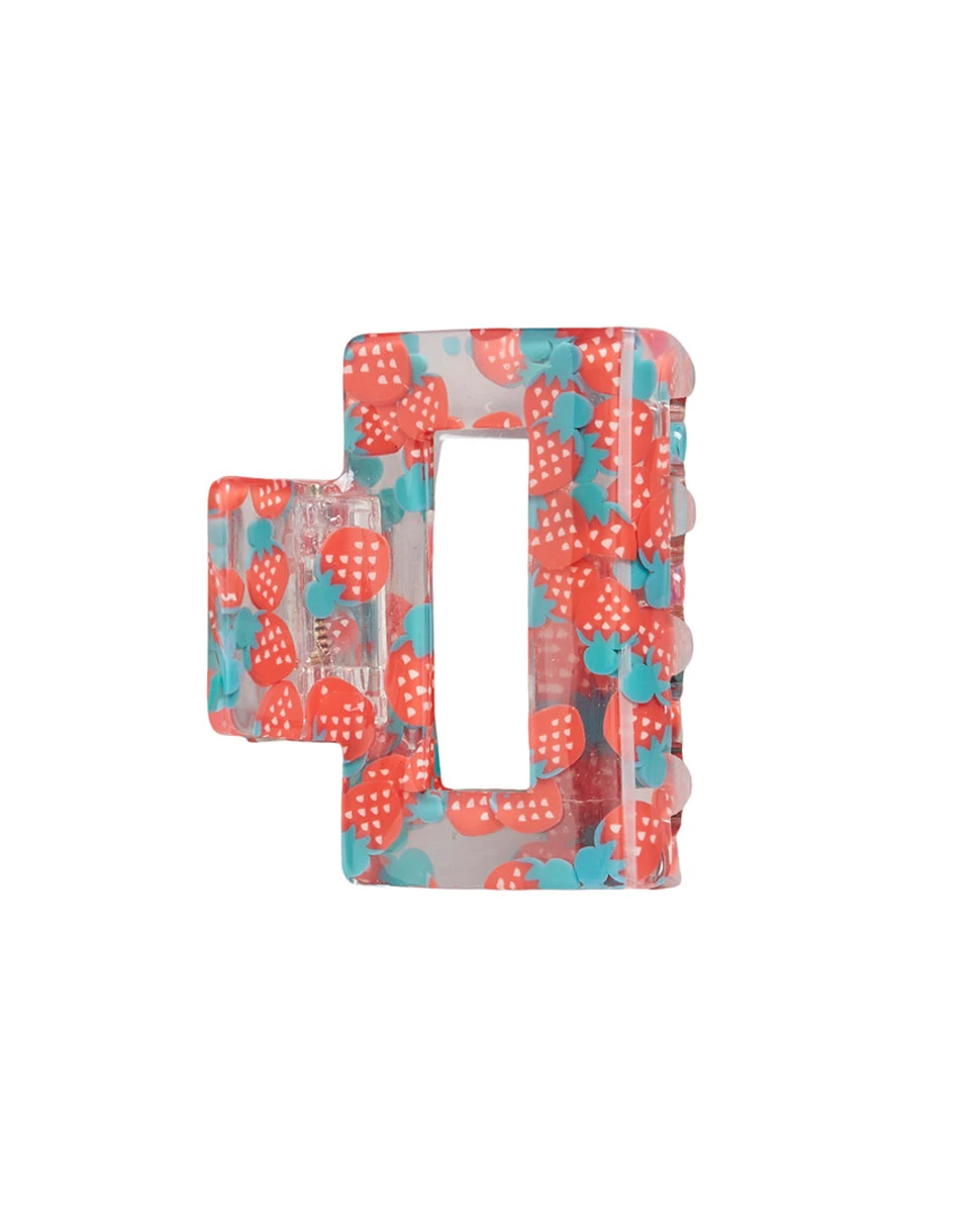 Beck Sondergaard Summer Tomato Hair Claw, a clear plastic hair clip covered in red and green strawberries.