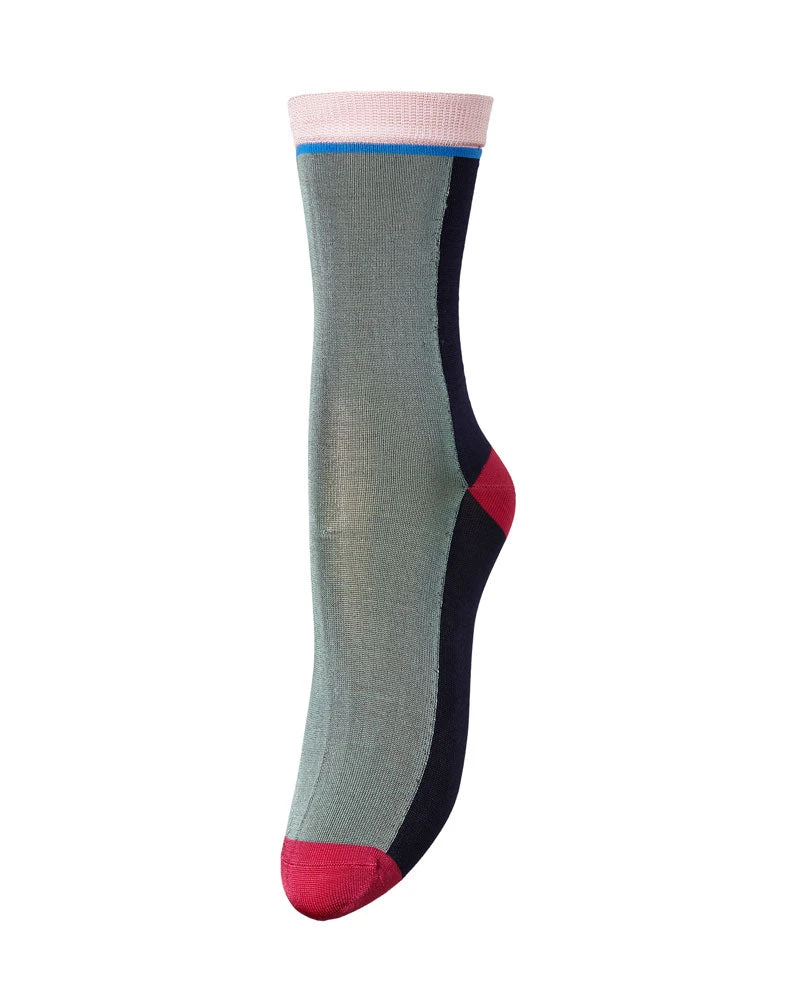 Beck Sondergaard Tony Pine Sock, a multicoloured pair of stretchy ankle socks combining pink, grey and blue tones.