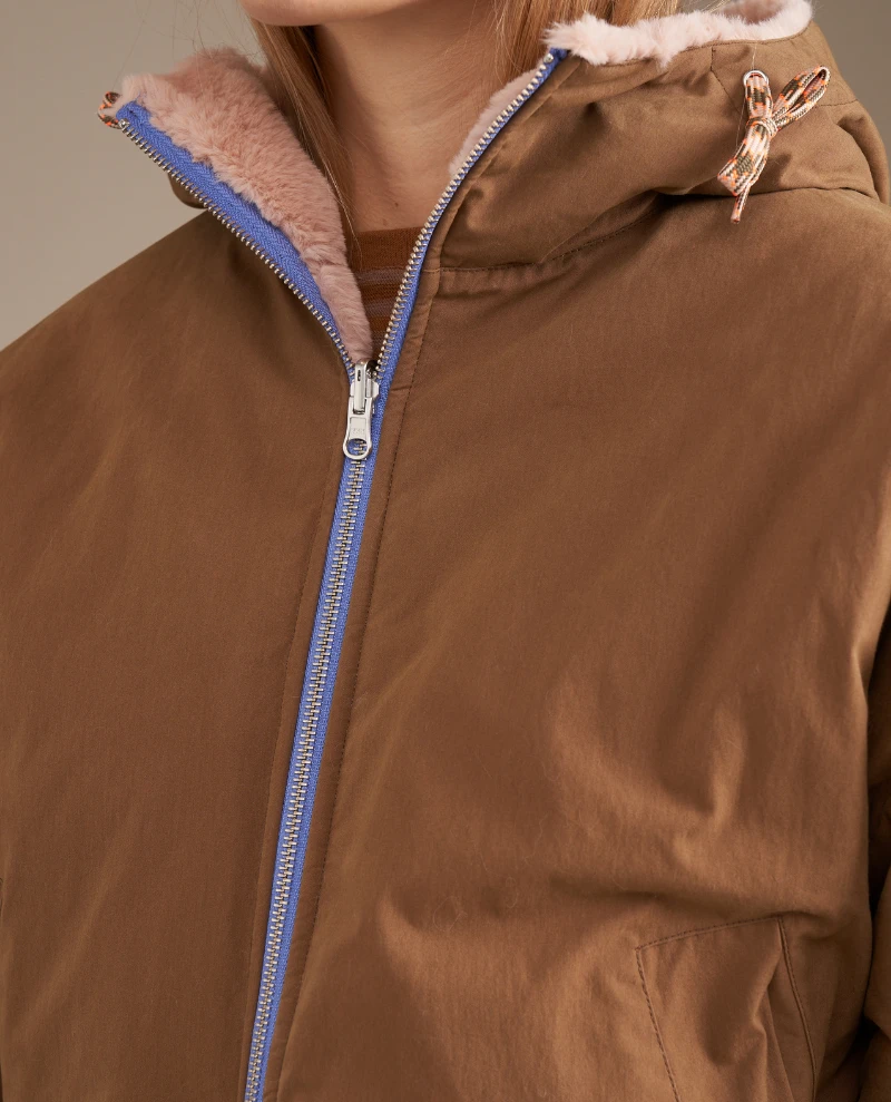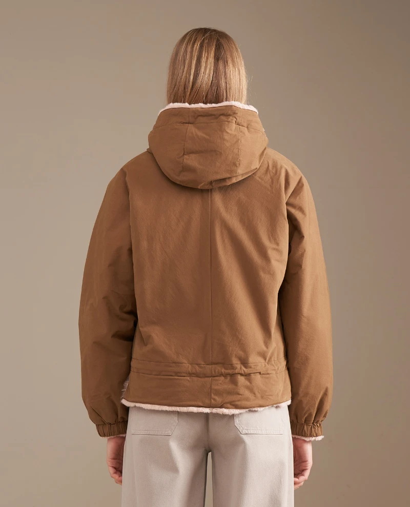 This Bellerose Loud Khaki Green Jacket is a reversible jacket that is perfect for any weather. Its iconic design and earthy tones provide a stylish look while its faux-fur side offers warmth and its other side is water-resistant for protection during showers. The hood, pockets, and cuffed sleeves make this jacket the perfect fashionable layer.