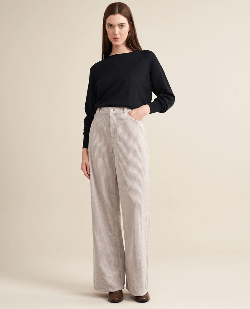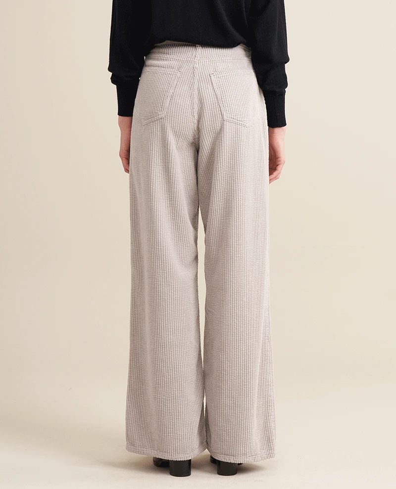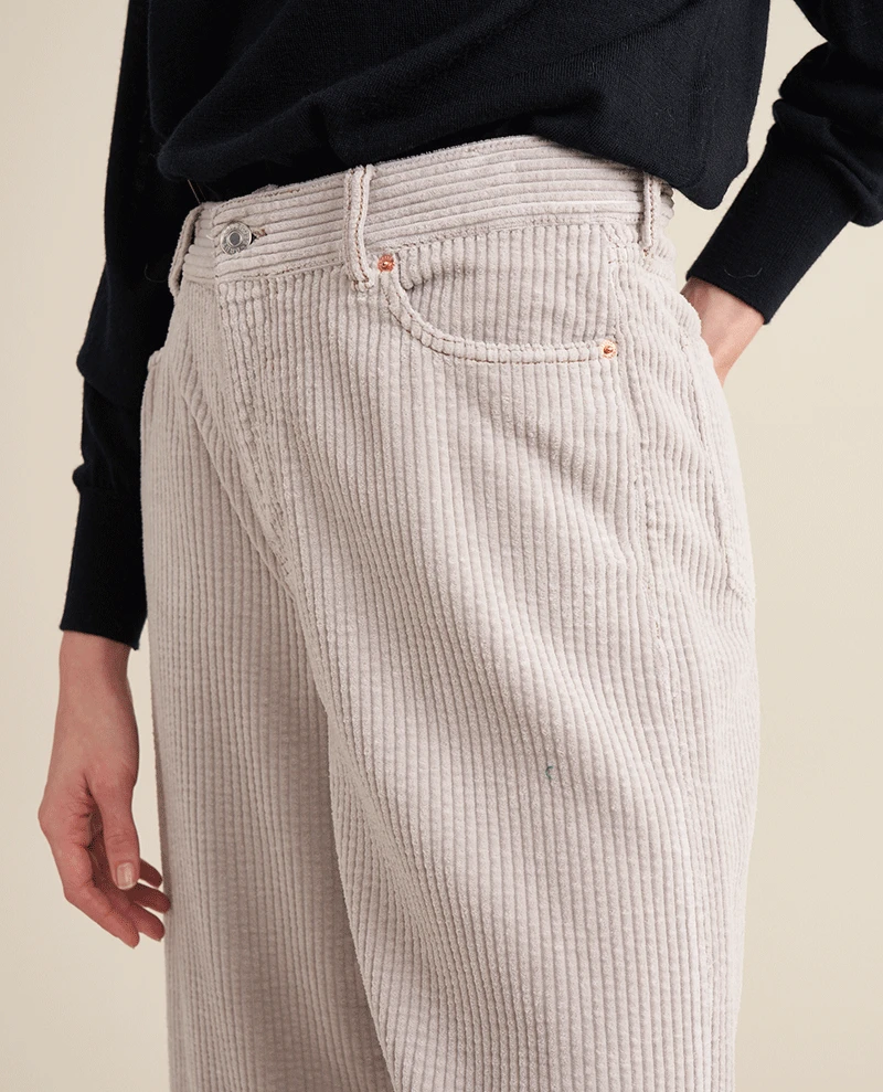 Our Bellerose Parthe Pearl Cord Trousers are sure to make a statement. Crafted with a unique light toned fabric, these trousers feature a mid to high waist and jumbo cord finish for a timeless look. Additionally, they feature pockets to the front and back, and a zip and button closure for maximum convenience.