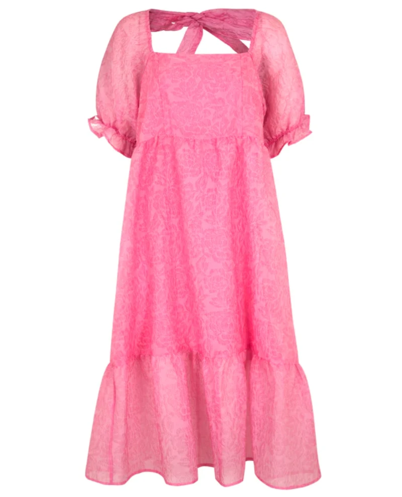 Cras Estercras Bonbon Dress, a smock style dress with a tiered skirt and voluminous silhouette. Complete with squared neckline and half sleeves with frill detail.