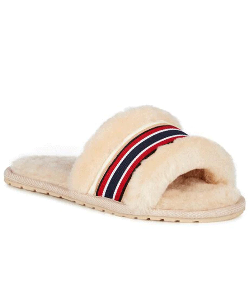 EMU Wrenlette Natural Slippers, a cosy slip on slider slipper with a flexible slip resistant rubber sole. Crafted from natural woolmark accredited sheepskin these Australian slippers are a practical everyday shoe that can be worn indoors and outdoors. The woolly insole gives cloud like comfort and warmth.