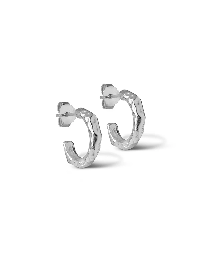 Enamel Copenhagen Hali Silver Hoops, a small pair of silver hammered hoop stud earrings.