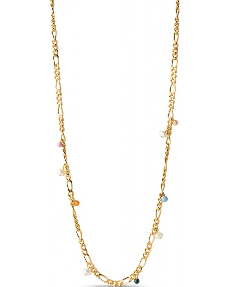 Enamel Copenhagen Willa Necklace, a gold chain necklace with colourful enamel beads and fine white pearls. lightly on the chunky side but still delicate enough for everyday wear the golden Willa necklace fastens with a clasp.