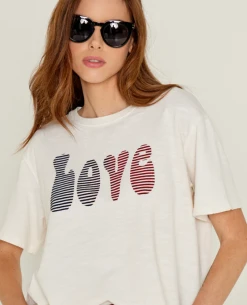 Our Five Ecru Love T-Shirt offers effortless style and comfort. Crafted from a soft cotton blend in a versatile round neck cut, it features short sleeves and stylish printed Love lettering to the front. Feel classic and confident all day long.