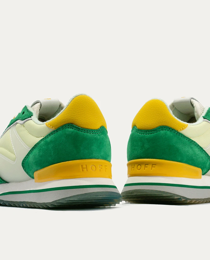 Hoff Popart Green Trainers, a comfortable pair of green and yellow suede training shoes with white laces. Retro inspired the Pop Art sneakers have a thick rubber sole and a heel stabiliser.