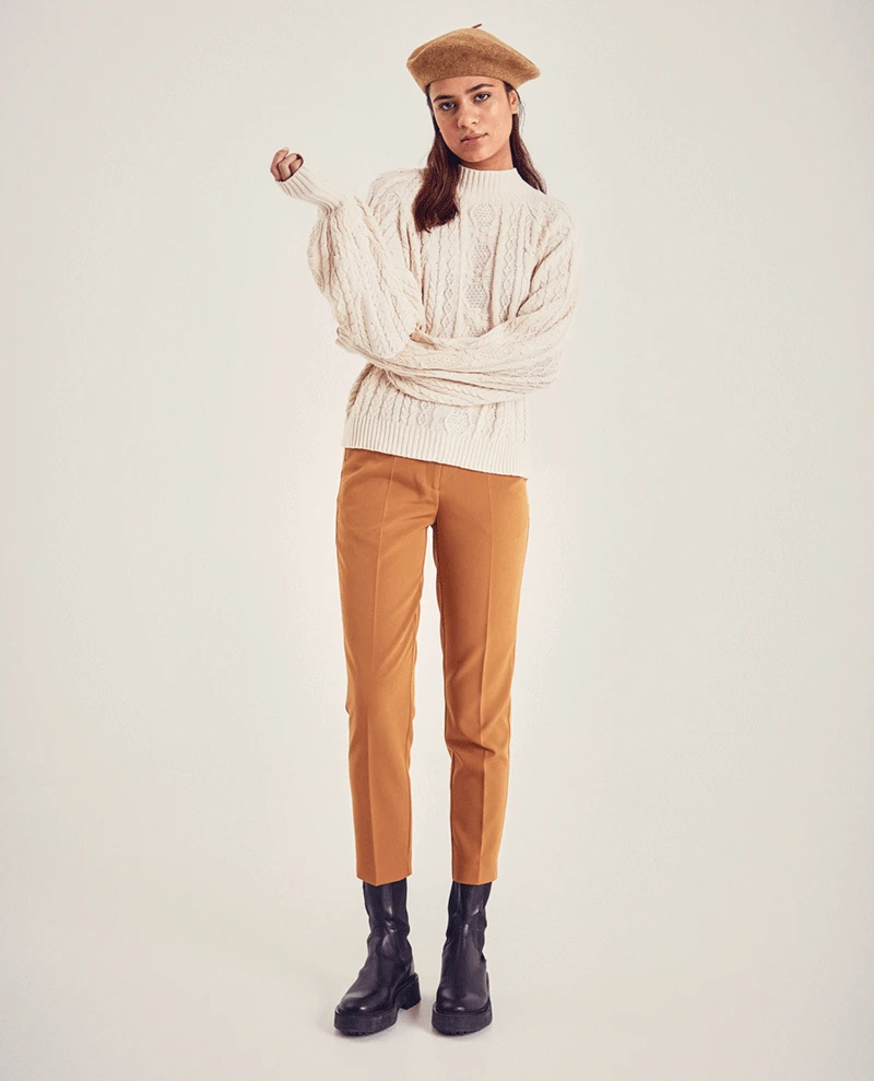 Ichi Alice Brown Beret, a light brown woollen hat that is also available in lilac.