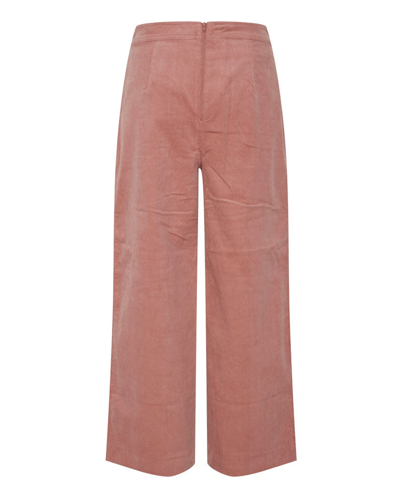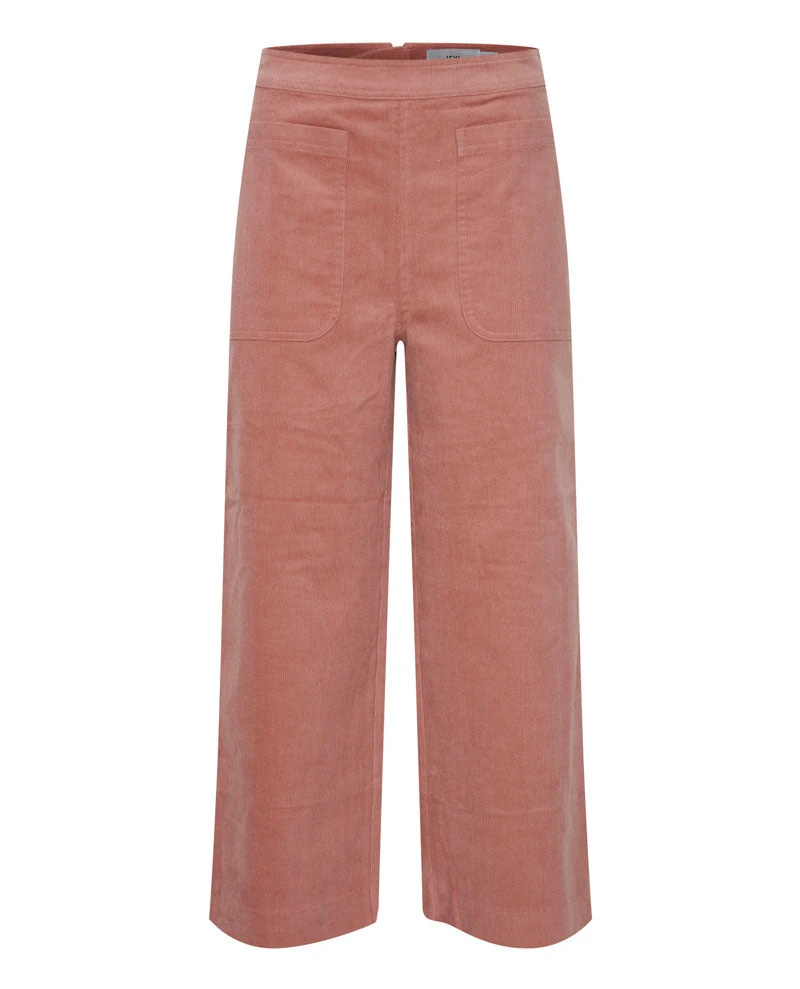 Ichi Cordy Rose Wide Leg Trouser, a lovely soft cord trouser in soft ashy pink tone. With wide leg and a slim waistband, the Cordy trousers are finished with sleek pockets to the front and central zip to the back.