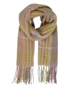 Ichi Elma Neutral Pastel Scarf, a soft toned checked scarf. In pink, purple and soft blue, this checked scarf will keep you warm throughout the season. Finished with a decorative fringed edge.