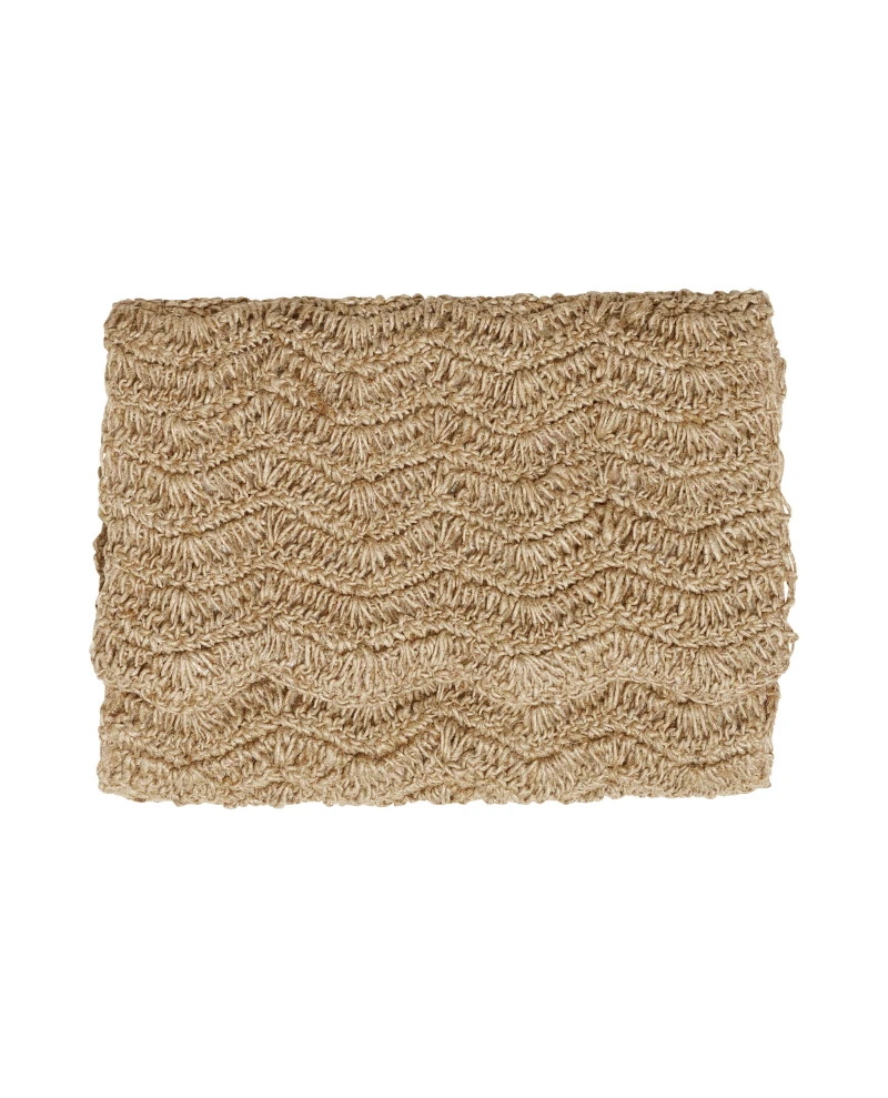 Ichi Joelle Doeskin Bag, a neutral toned clutch bag in rectangular shape. Made from straw, this clutch has a main compartment as well as a zipped internal pocket.