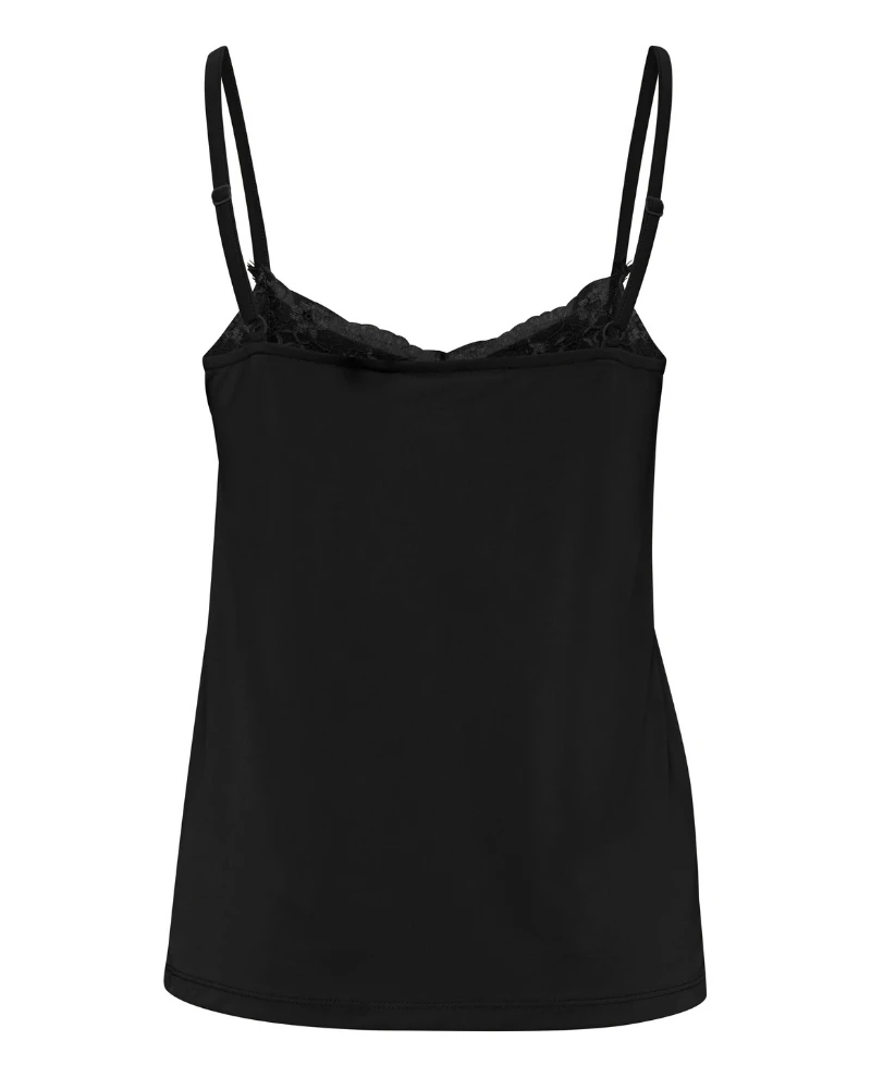 Ichi Like Black Top, a comfortable and lightweight camisole in classic black. Featuring detail lacing to the bust and slim straps, this is a versatile piece that can be layered beneath items year-round. Available in Pink and White.