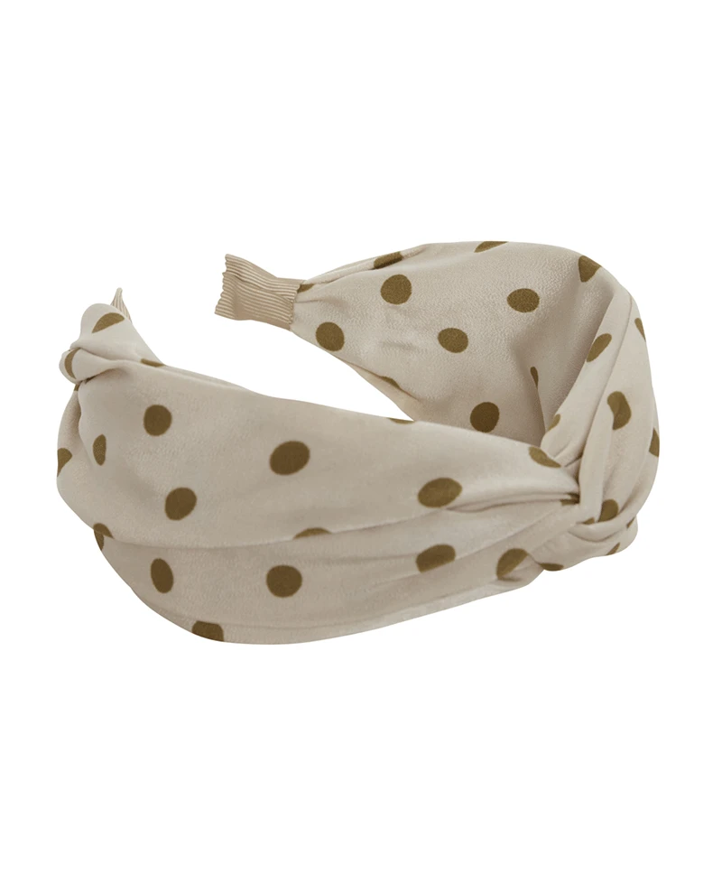 Ichi Talia Doe Hairband, a cream spotty fabric covered headband with a knotted design on the front. Also comes in blue.