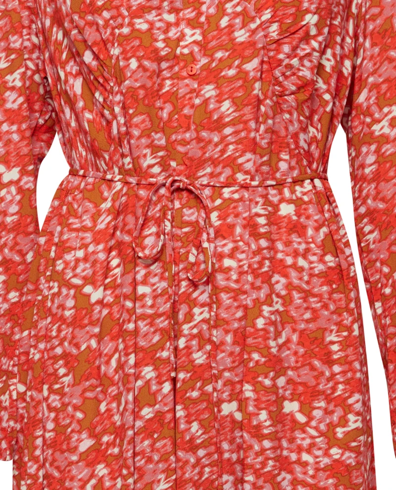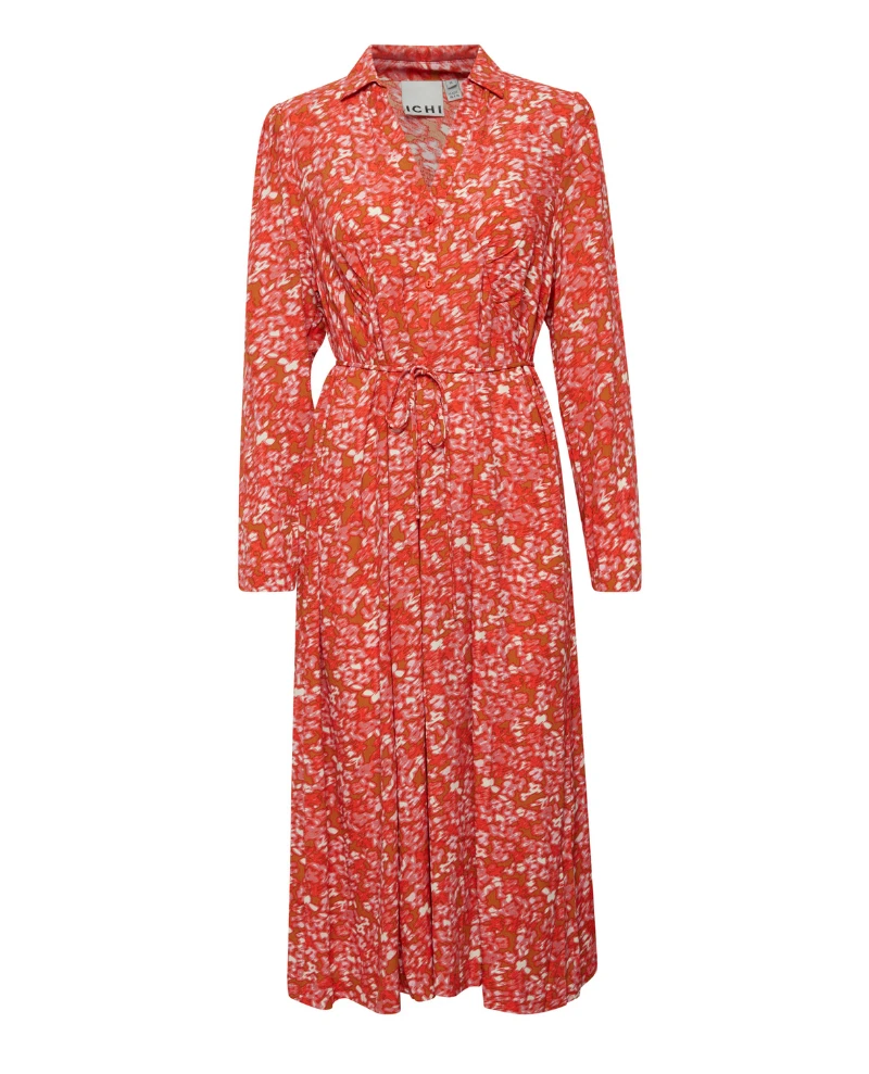 This eye-catching Ichi Tusnelda Orange Dress features a vibrant orange and red pattern on a classic shirt dress silhouette. It is designed with a button front, collar finish, midi length and long sleeves making it a perfect addition to your wardrobe. Wear it for a statement look and guaranteed compliments.