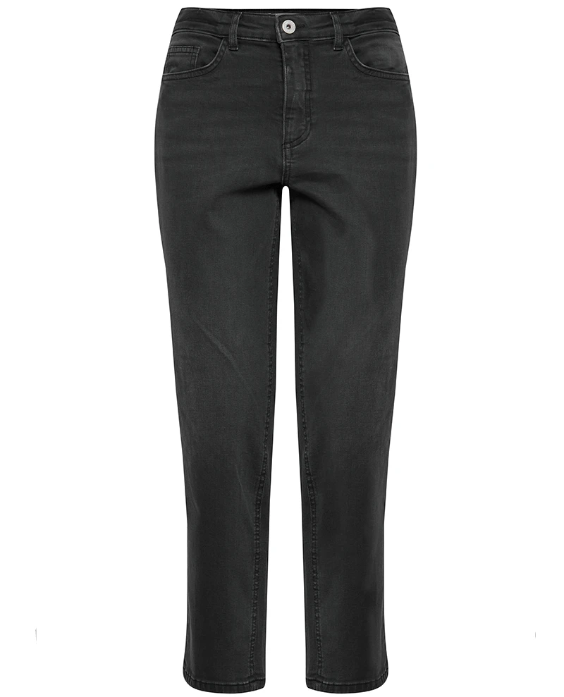 Ichi Twiggy Raven Washed Grey Jeans, a cropped pair of casual everyday jeans with a button and zip fastening.