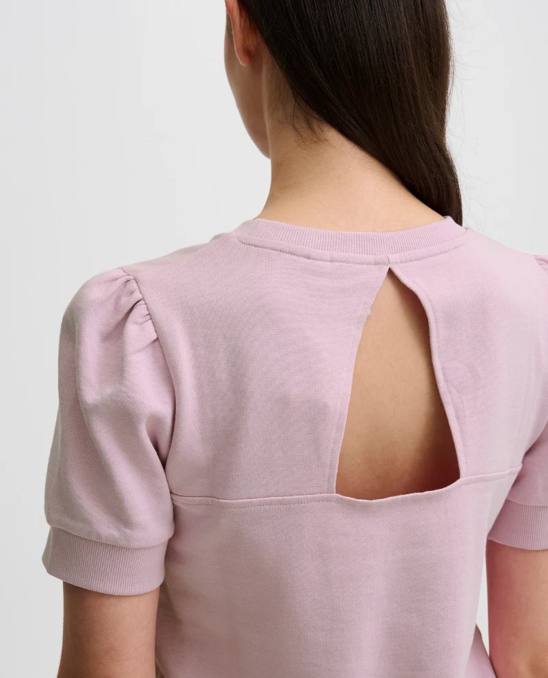 Ichi Yarla Fragrant Lilac Sweatshirt, a pale crewneck with short sleeves. A simple design, the Yarla sweatshirt has a feminine cut out to the back. Pair with jeans and trainers for a casual look.
