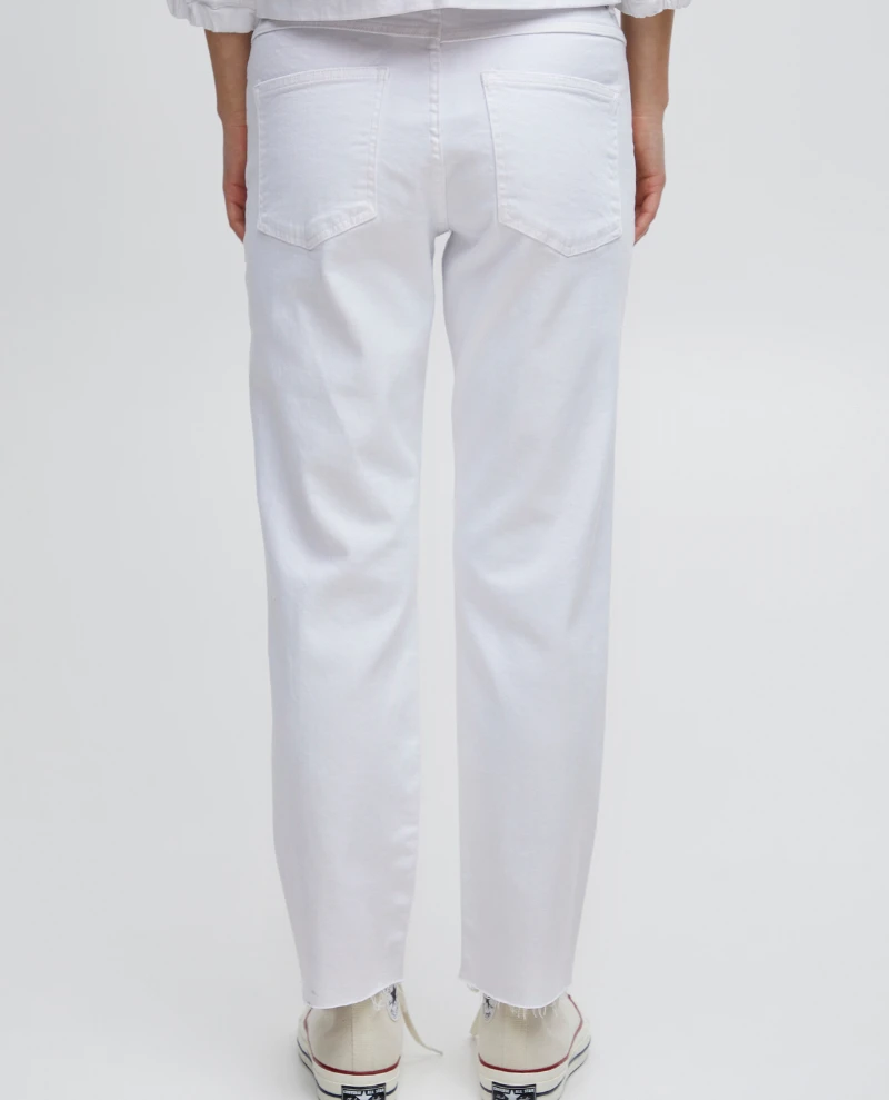 Ichi Ziggy Raven Bright White Jeans, the perfect summer white jean. With a straight leg and mid rise, the Ziggy are finished with pockets to front and back, classic button and zip closure as well as a rough cut hem.
