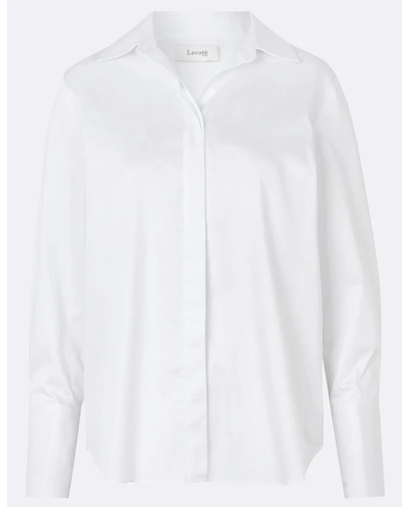 Levete Room Isla White Blouse, a a crisp white long sleeved shirt with a pointed collar and a long loose fit. Crafted from organic cotton this soft classic button down shirt has a pleat on the back to ensure of flattering and easy fit.