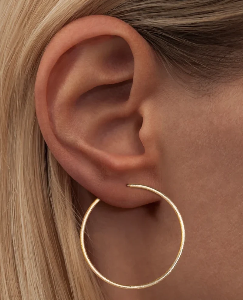 Lulu Copenhagen Gold Plated Large Hoop Pair, a pair of hoops in a brushed brass look. Minimal in design, these hoops are a great gift and staple year-round. Nickel-free, the brushed surface adds an exclusive appearance.