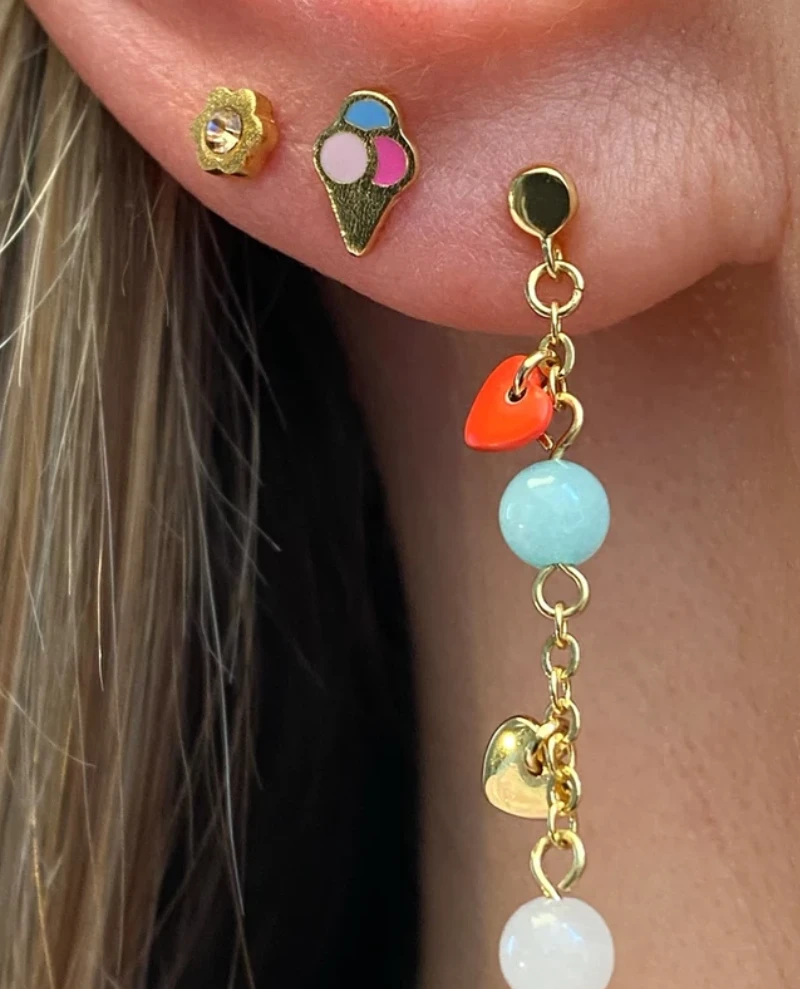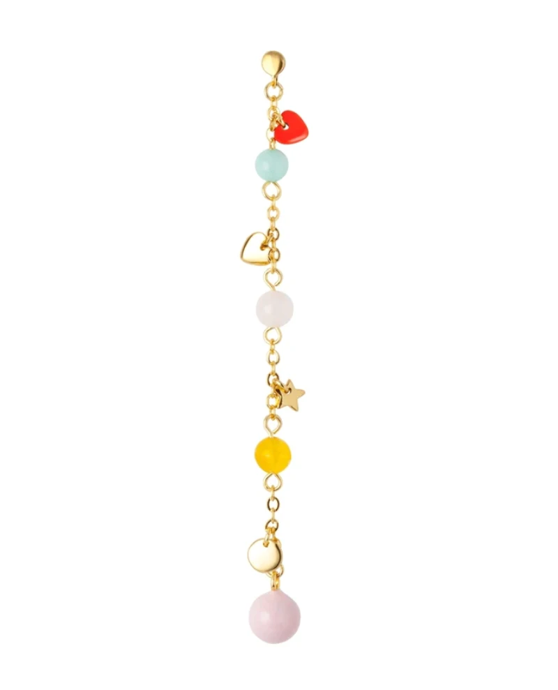 Material: Gold plated brass 18K, e-coating, amazonite gemstone, yellow quartz, rose quartz gemstone, enamel ball, enamel heart