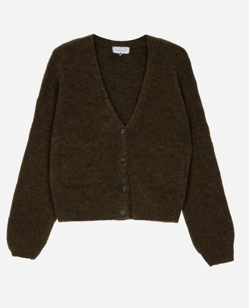 Step out in style with the Maison Anje Brielly Khaki Knit. Great for layering, this v-neck cardigan is perfectly constructed with long sleeves and button down front for a chic, professional look. The deep khaki green tone makes for a versatile piece that you’ll reach for time and time again.