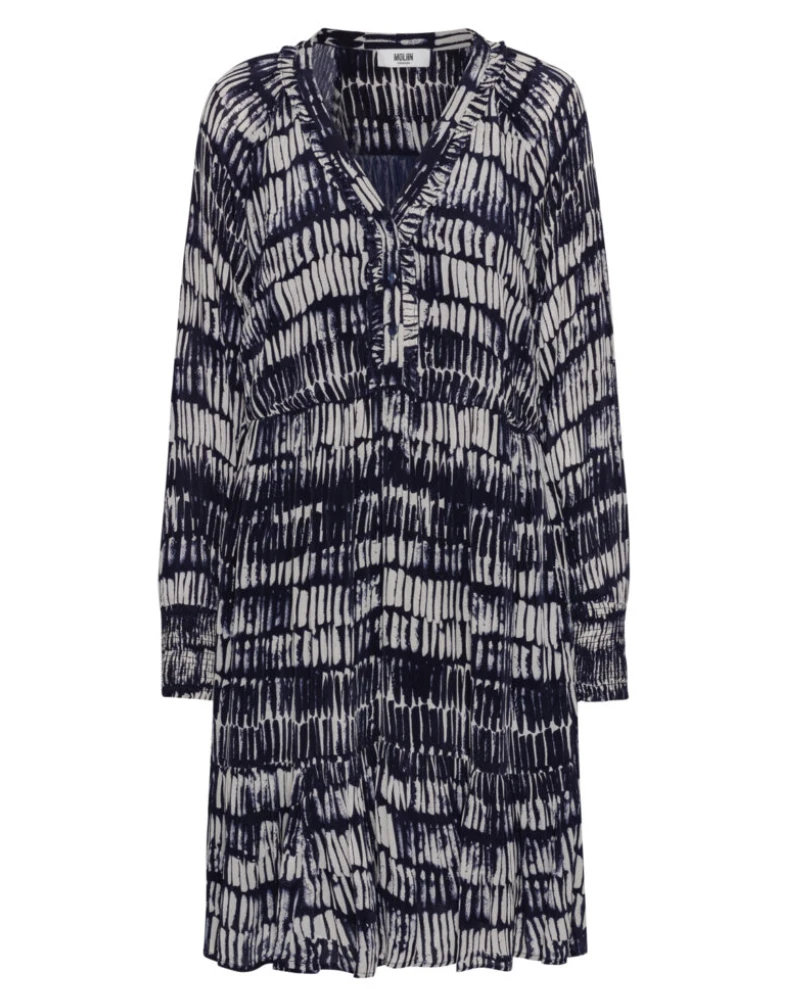 The Moliin Louise Evening Blue Dress is a stylish yet comfortable option for any special occasion. This floaty dress falls to the knee with a ruffled v-neckline and long sleeves featuring elasticated cuffs. It’s the perfect mix of elegance and practicality, one you can wear with confidence and comfort.