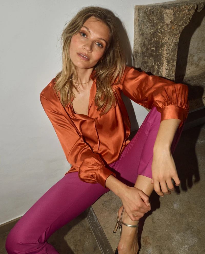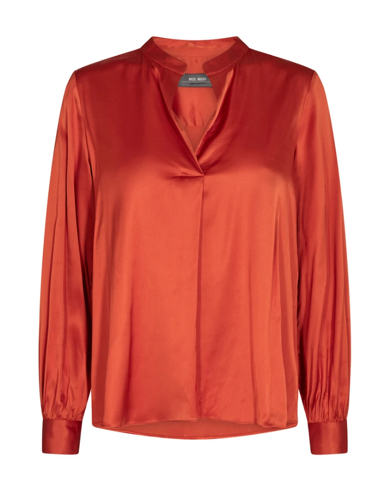 The Mos Mosh Enfa Ochre Blouse is a gorgeous, silky blouse featuring a v-neckline and long sleeves. The warm ochre tone is feminine and classic, ideal for any wardrobe. Perfect for any occasion.