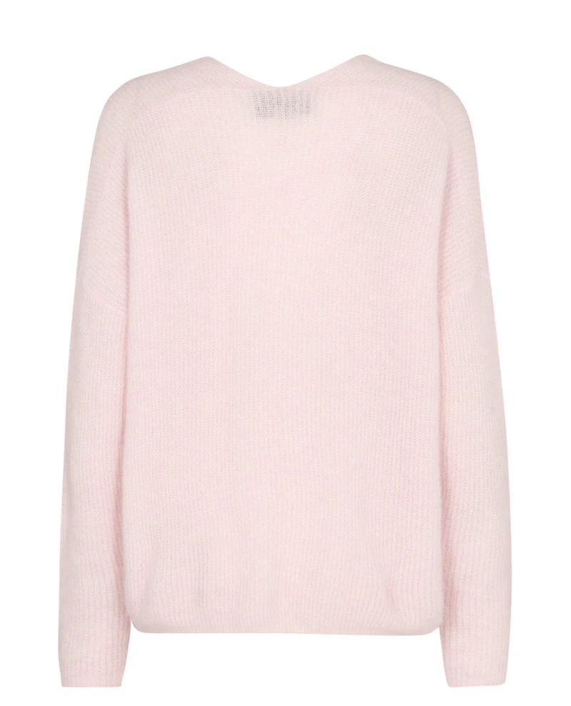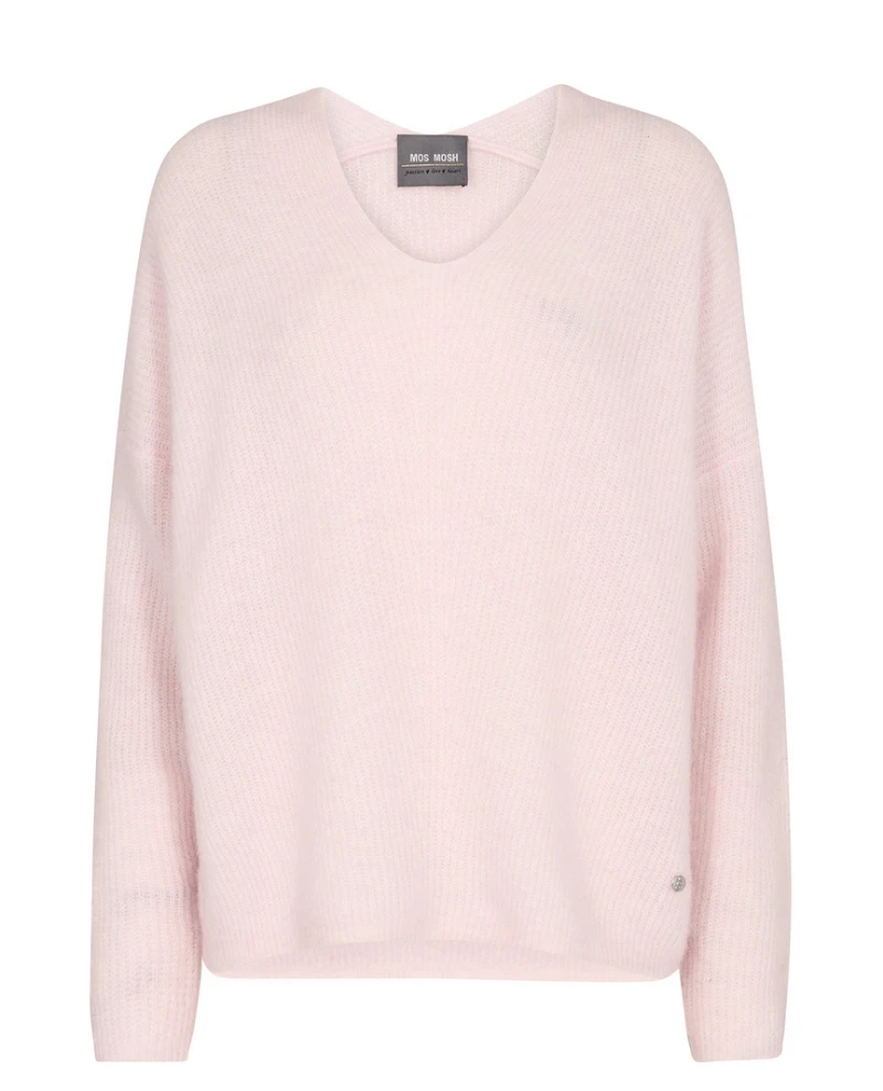 The Mos Mosh Thora Ballet Knit is crafted from a soft pink yarn with a light handle. This soft design features long sleeves and a flattering v-neckline, perfect for any day or night look. Experience the luxurious comfort of this timeless design.