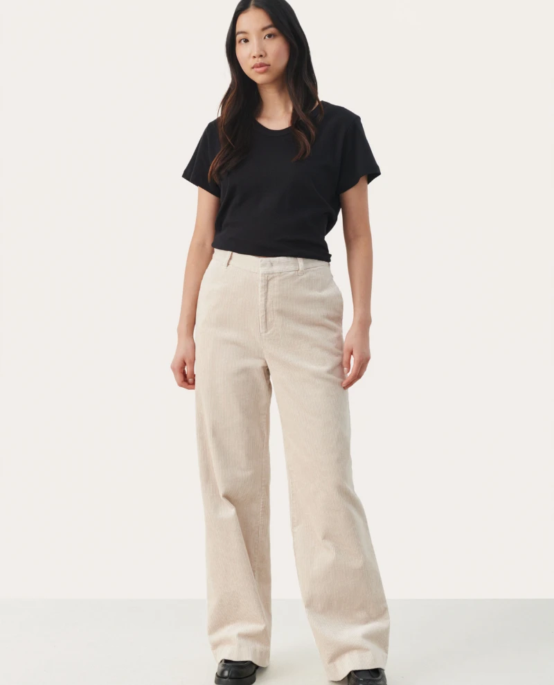 Made from soft and comfortable cord fabric, the Part Two Clarisse Perfectly Pale Trousers provide the perfect look for any occasion. Their mid-rise and straight leg construction ensures a classic and timeless silhouette that will look great every time. In a subtle pale cream color, these trousers are sure to become a staple in your wardrobe.