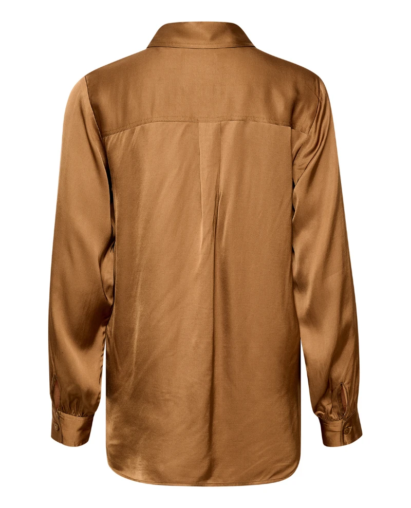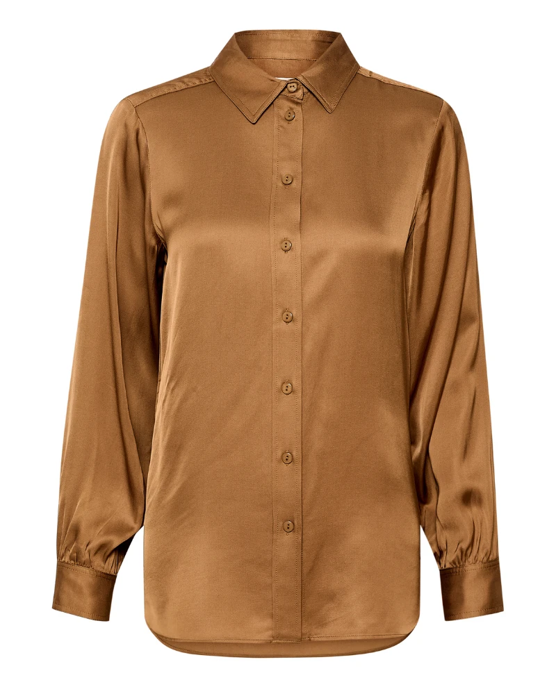 Look sophisticated and chic in this Part Two Coraline Brown Shirt. Made of a silky fabric in a toasted brown hue, the collar and buttoned front add a polished touch. Mix and match this timeless classic with accessories or wear it as is to turn heads.