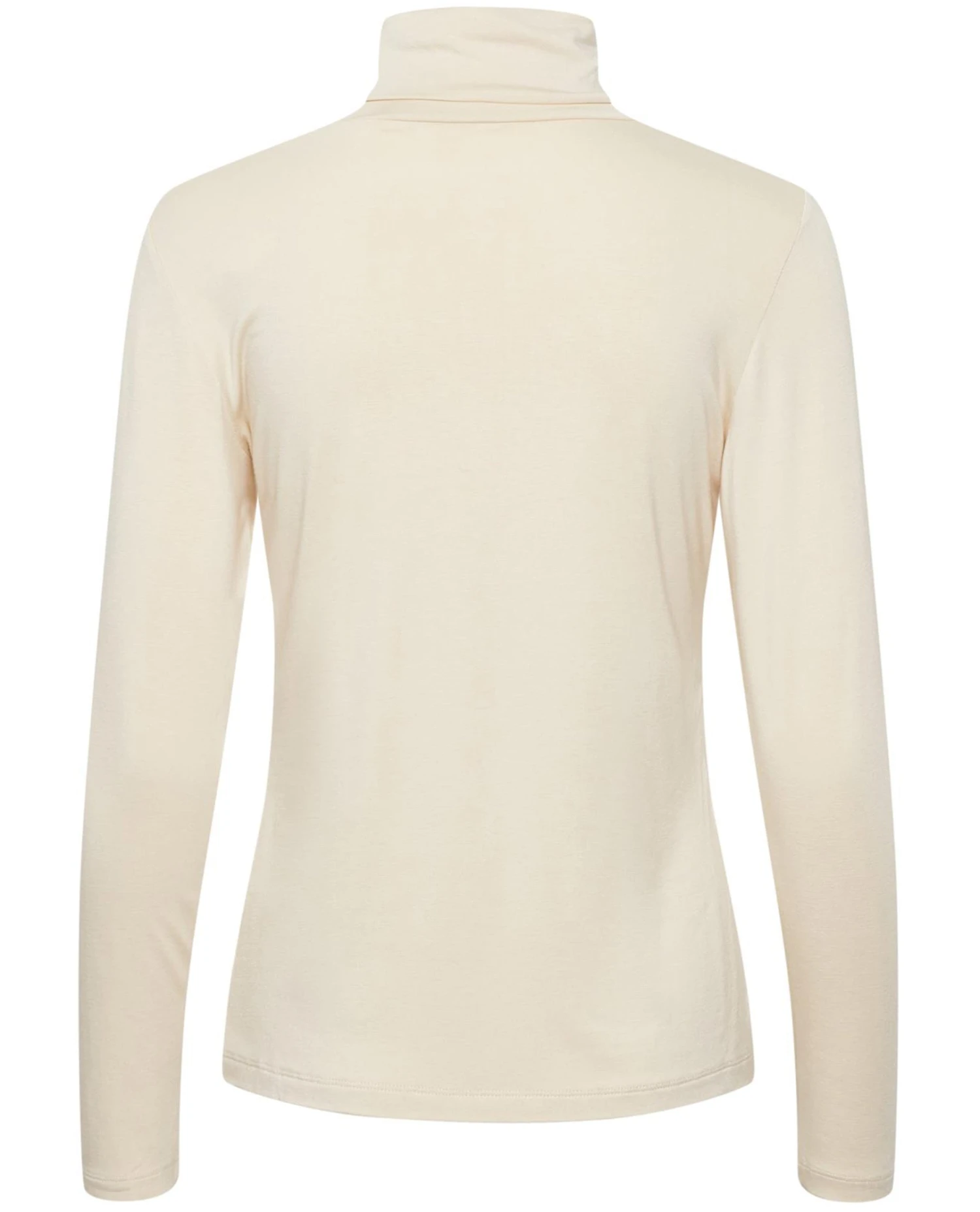 Part Two Efinas Cream Top, a figure hugging roll neck top made from stretchy viscose. A great layering piece this long sleeved t-shirt is lightweight and soft. Also available in black and navy.