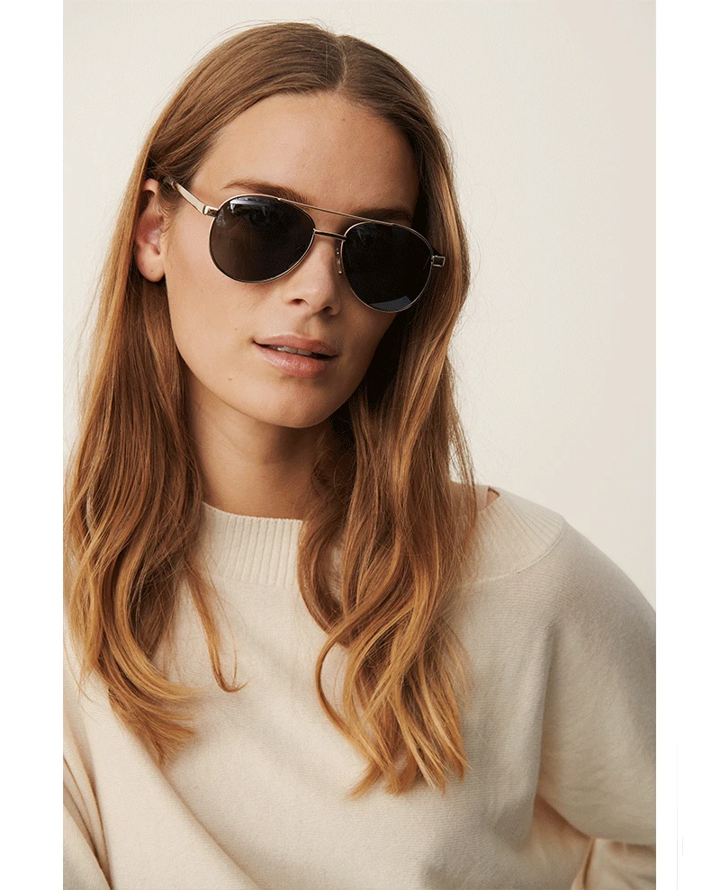 Part Two Hani Aviator Glasses, a metallic gold pair of round retro sunglasses. These vintage style glasses are lightweight and comfortable to wear.