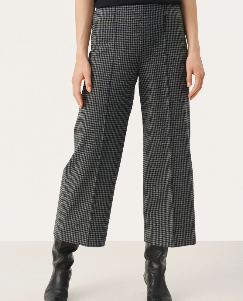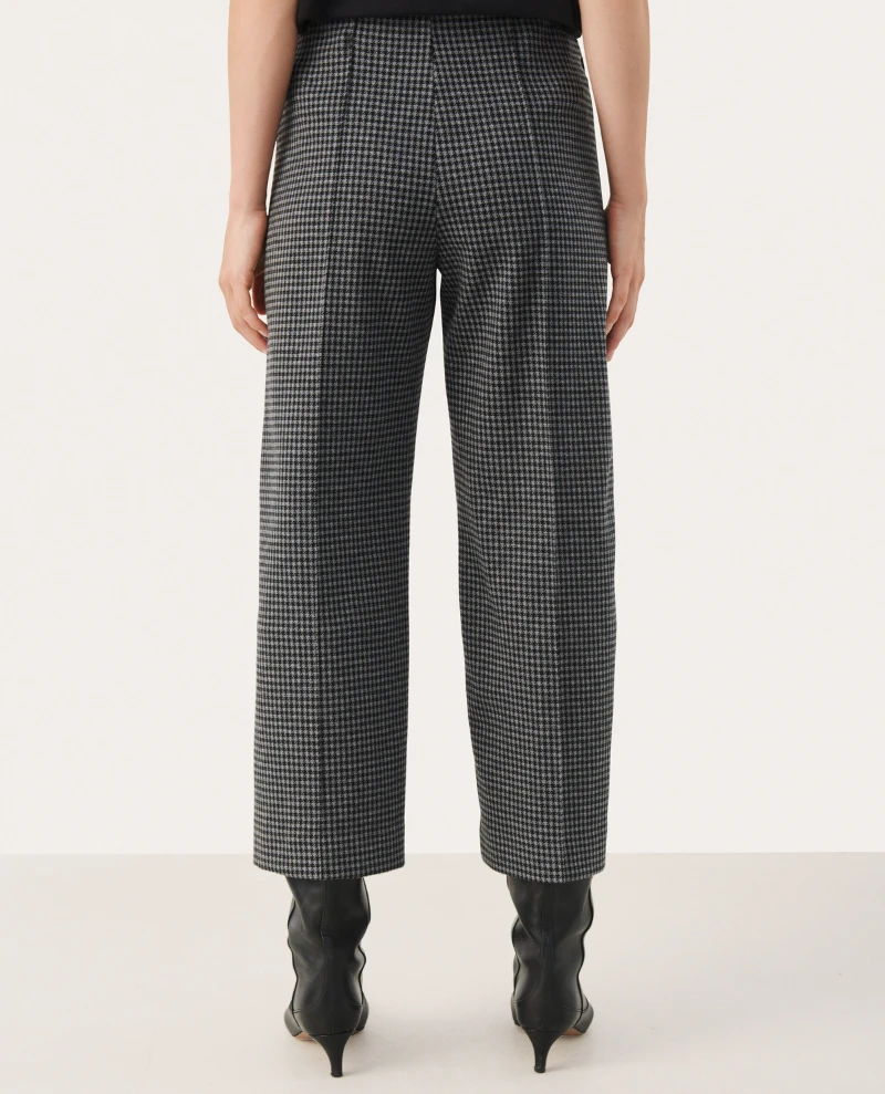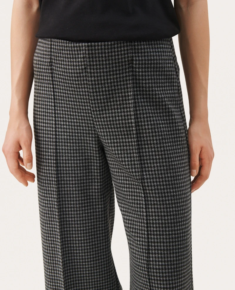 Part Two Ilisan Grey Check Trousers, a mid rise, wide leg trouser. Their timeless design makes them a perfect companion for any wardrobe. Crafted from a light and airy weave, these trousers are designed for comfort and ease of movement.