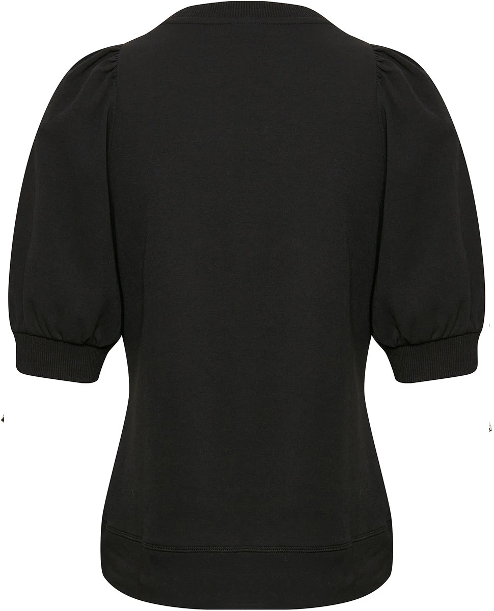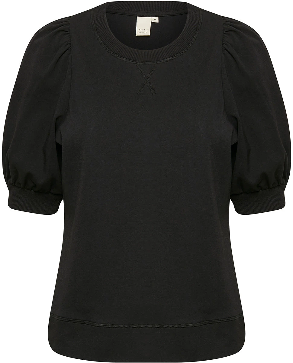 Part Two Jea Black Sweatshirt, a jet black jersey pullover with elbow length puffed sleeves and ribbed finishing on the hem, cuffs and round neck. Also available in white and grey.