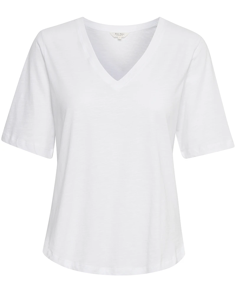 Part Two Kavrin White T-Shirt, a pure white short sleeved t-shirt with a v neck and a loose fit. Slightly cropped in the body this soft cotton t-shirt is an essential for any wardrobe.
