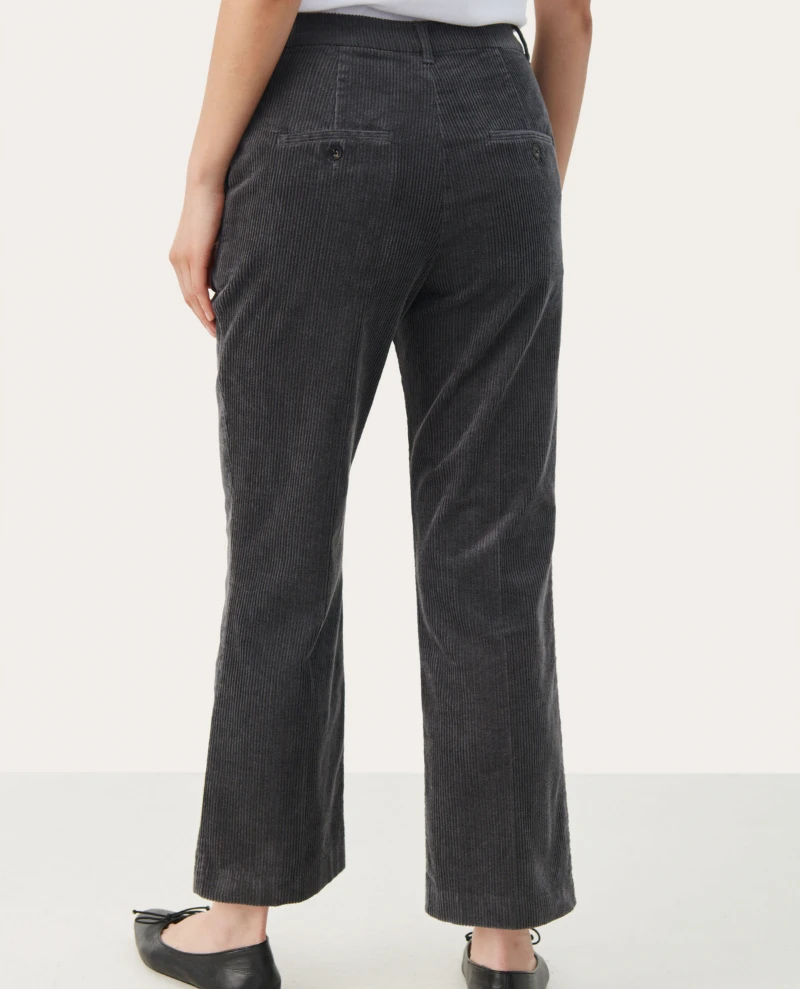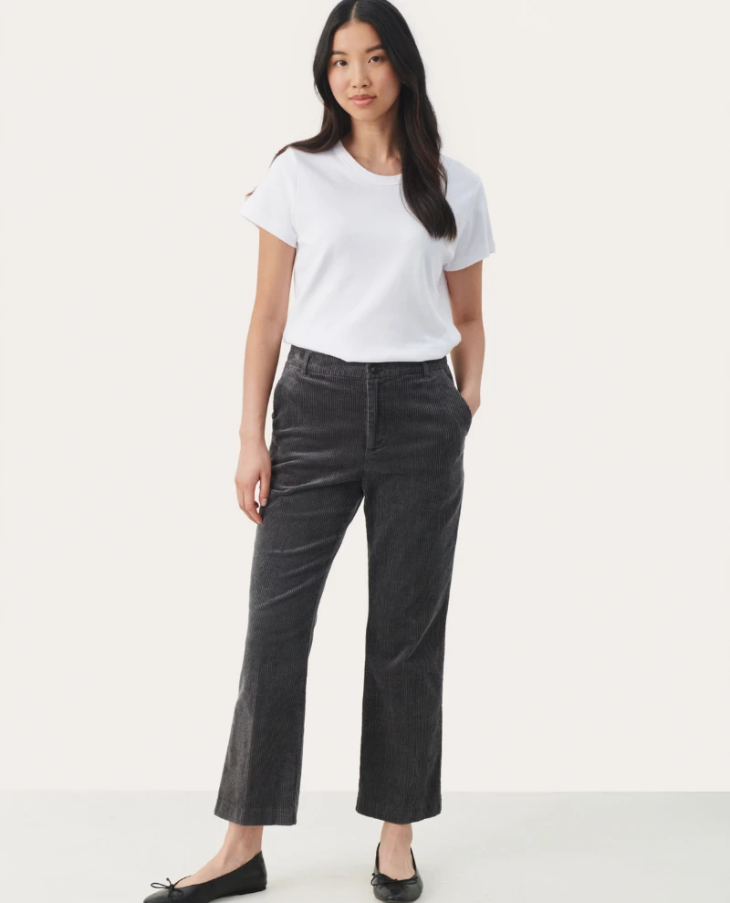 These Part Two Misha Magnet Trousers are crafted from dark grey cord and designed with a mid-rise and cropped length. Perfect for dressing up or down for any occasion, the Misha Magnet style offers classic style and timeless appeal.