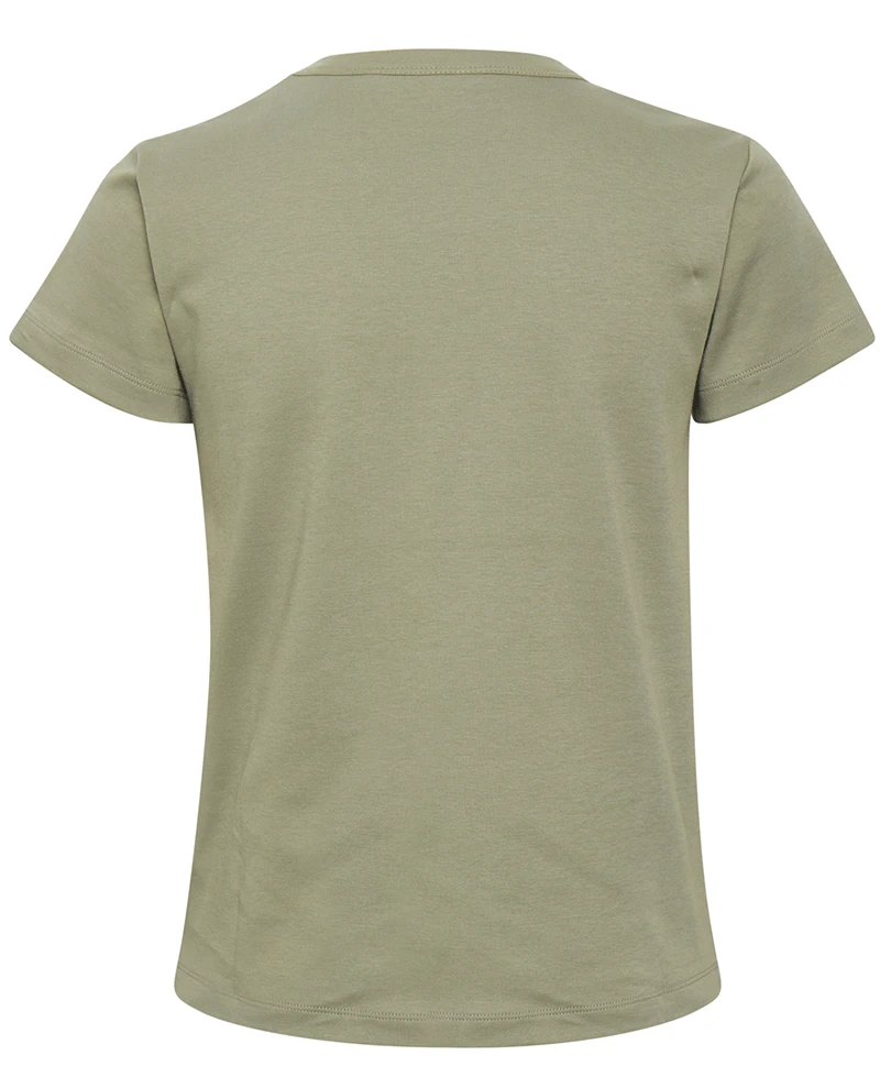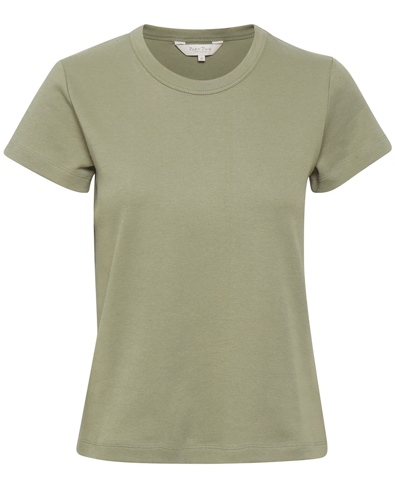 Part Two Ratan Vetiver T-Shirt, a straight fitting khaki green basic t-shirt with short sleeves and a round neck.