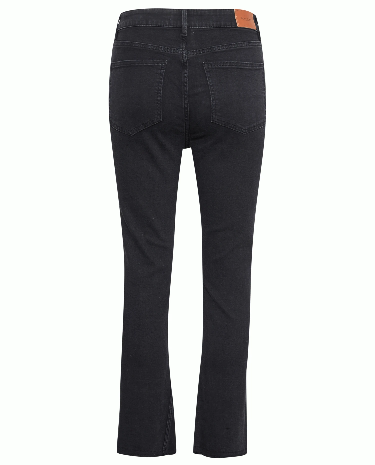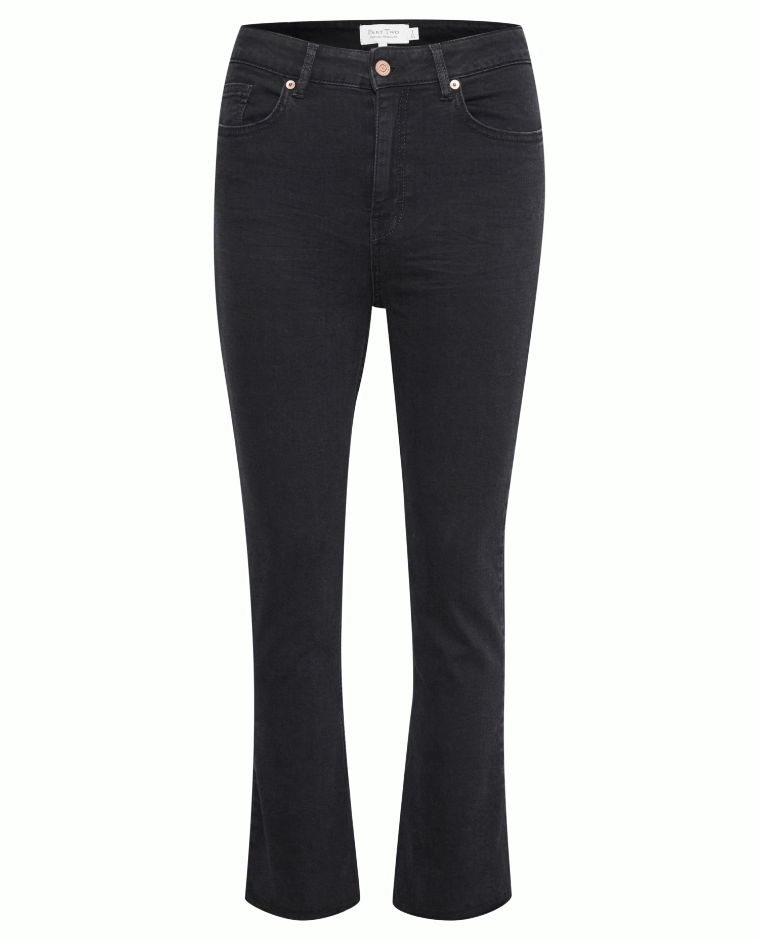 Part Two Ryan Jeans, a faded black pair of flared jeans with a cropped leg and the classic button and zip fastening.