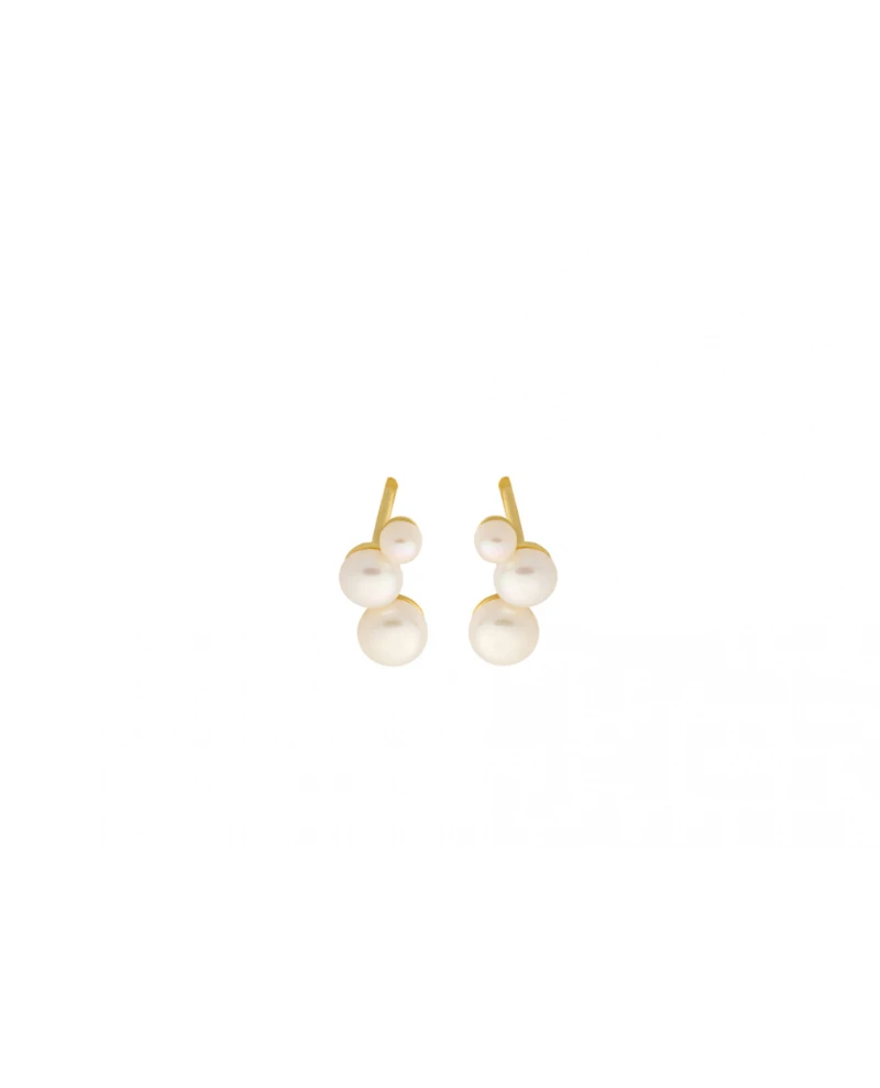 Pernille Corydon Treasure Earsticks, an elegant earring featuring pearls in a cluster formation. The delicate freshwater pearls which form a droplet, make these a feminine and romantic choice. Timeless, the Treasure Earsticks are made from gold plated recycled silver.